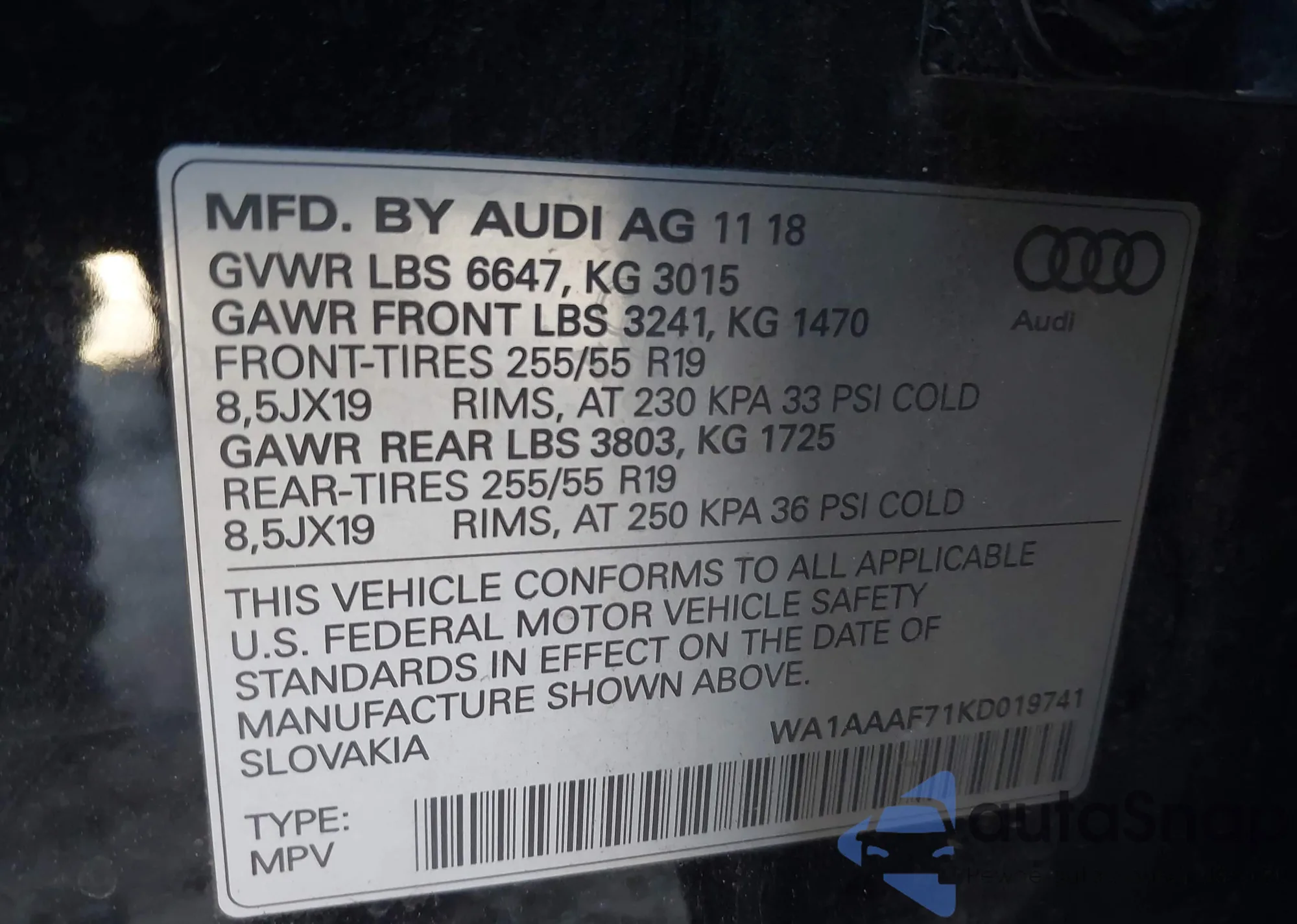 LOT: 44174837 VIN: WA1AAAF71KD019741