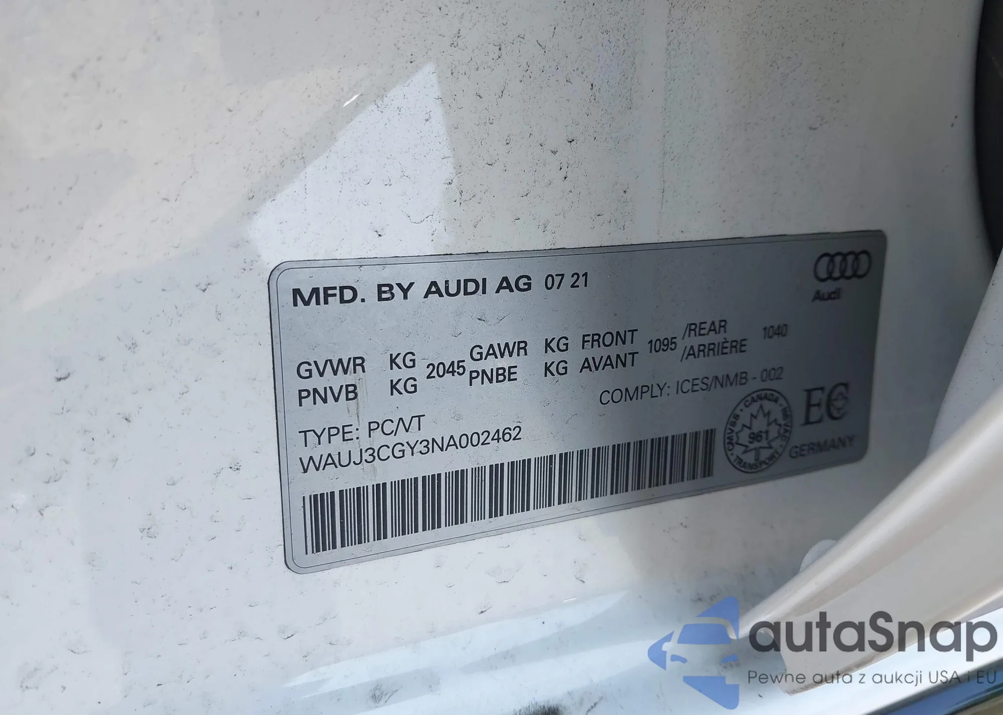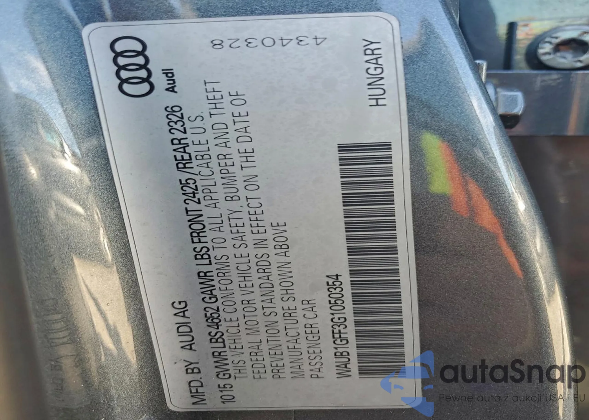 LOT: 95763275 VIN: WAUB1GFF3G1050354