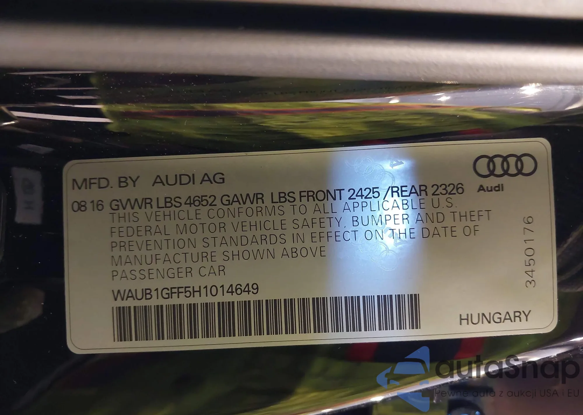 • VIN WAUB1GFF5H1014649