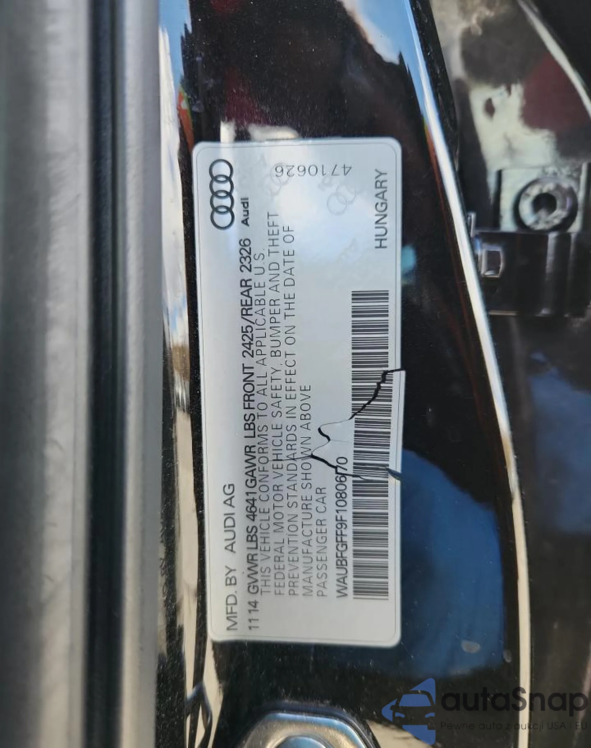 LOT: 92346985 VIN: WAUBFGFF9F1080670
