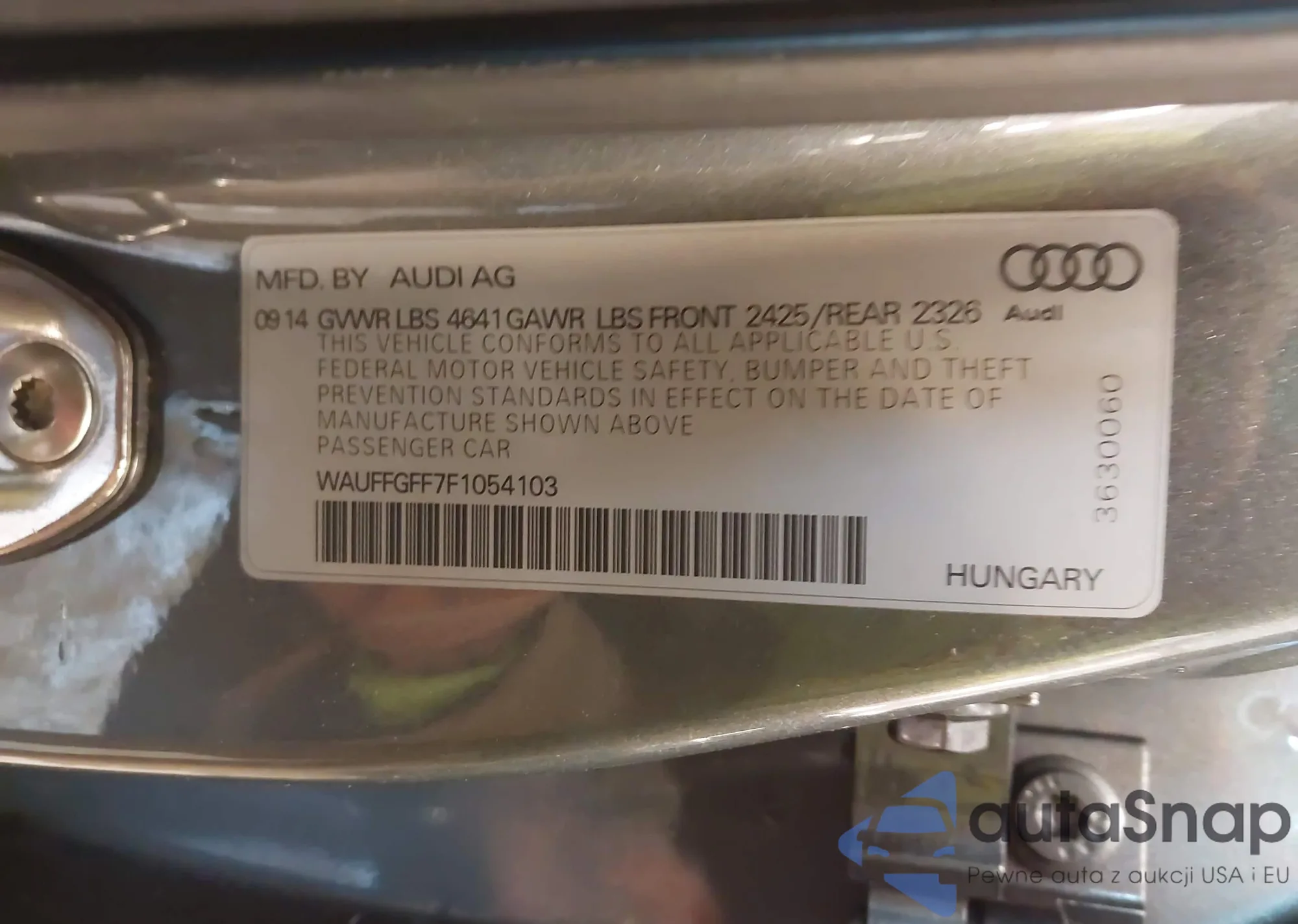 LOT: 44044436 VIN: WAUFFGFF7F1054103