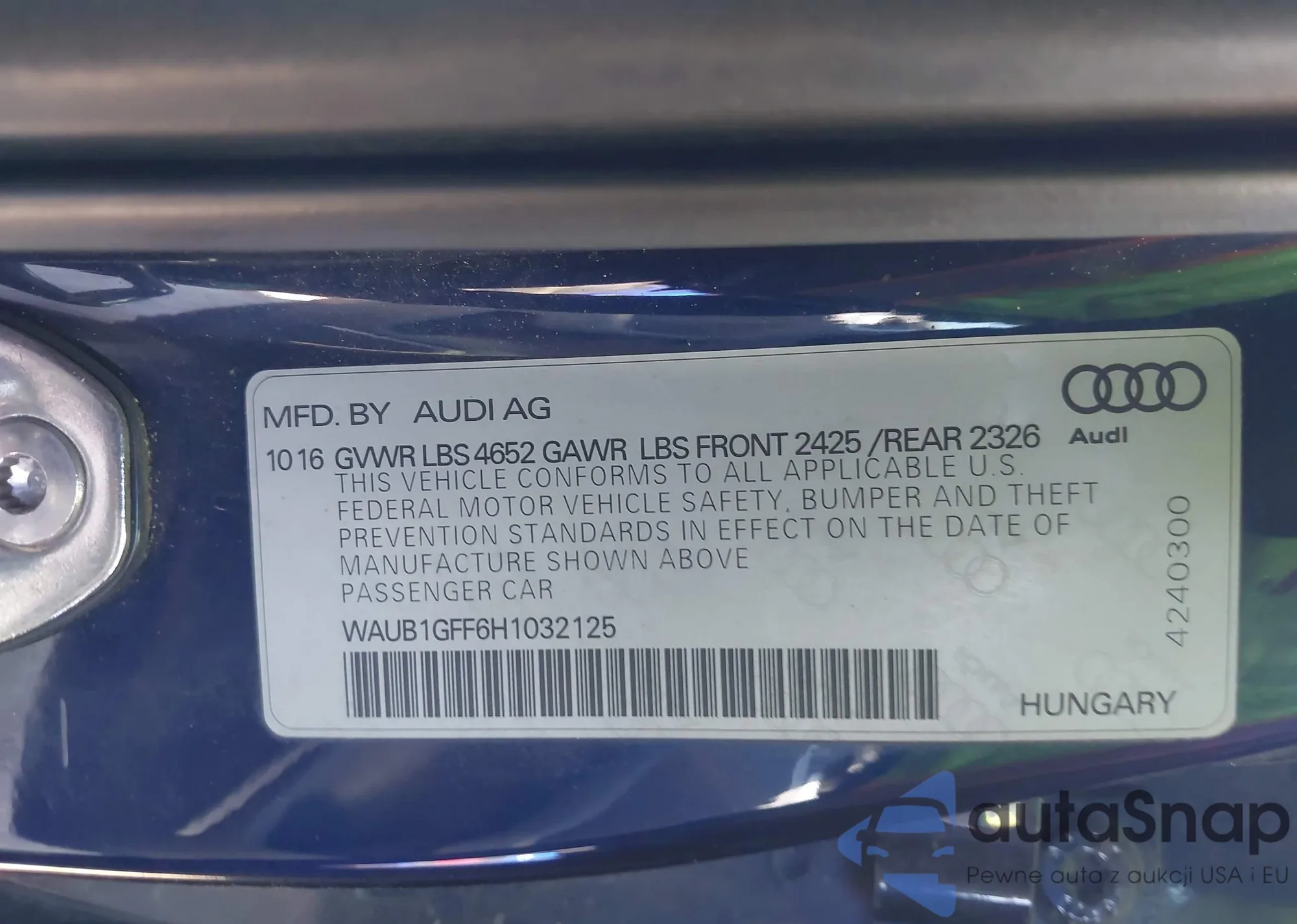 LOT: 44056941 VIN: WAUB1GFF6H1032125
