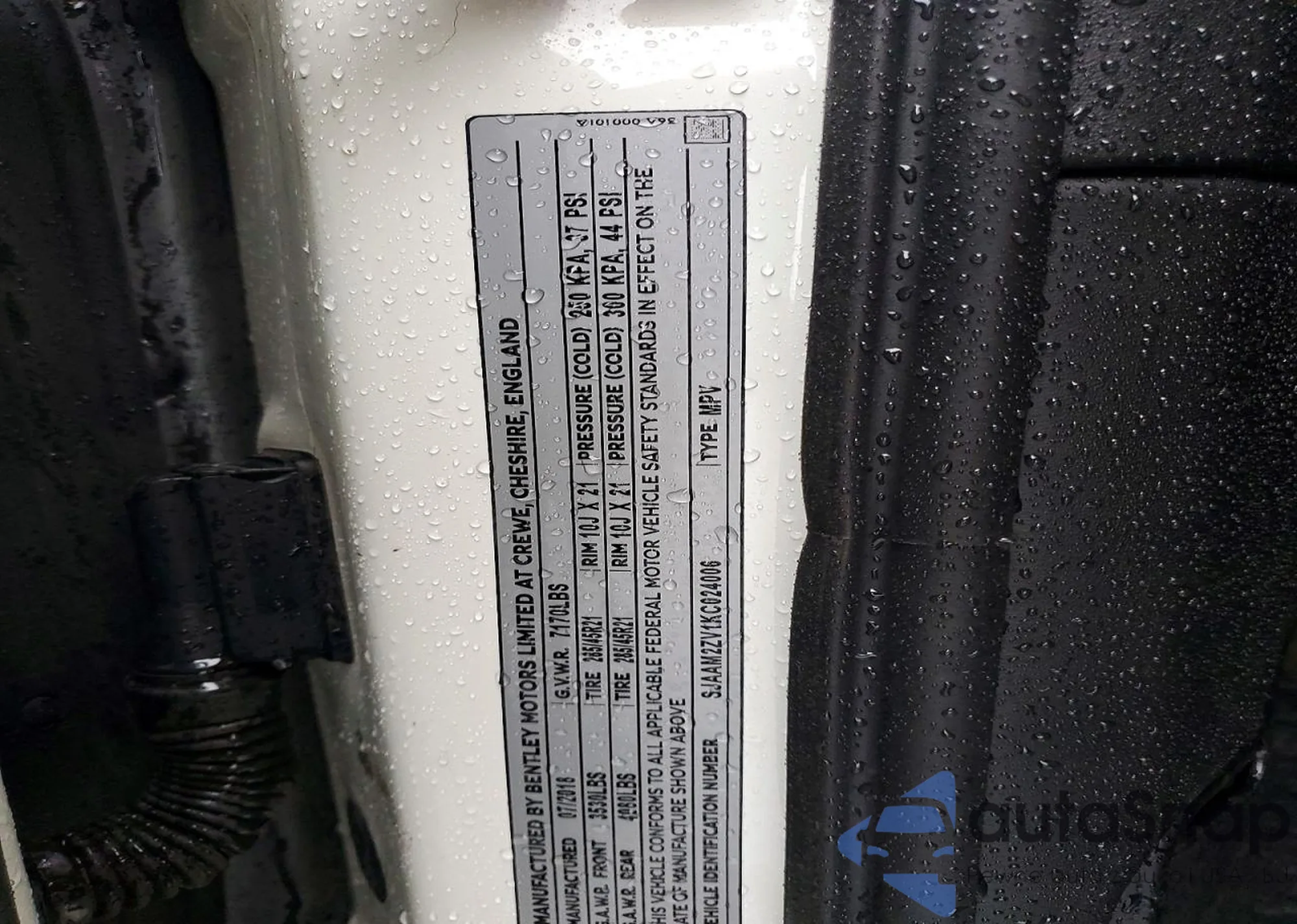 2019 Bentley Bentayga z USA, uszkodzony, nr VIN SJAAM2ZV1KC024006