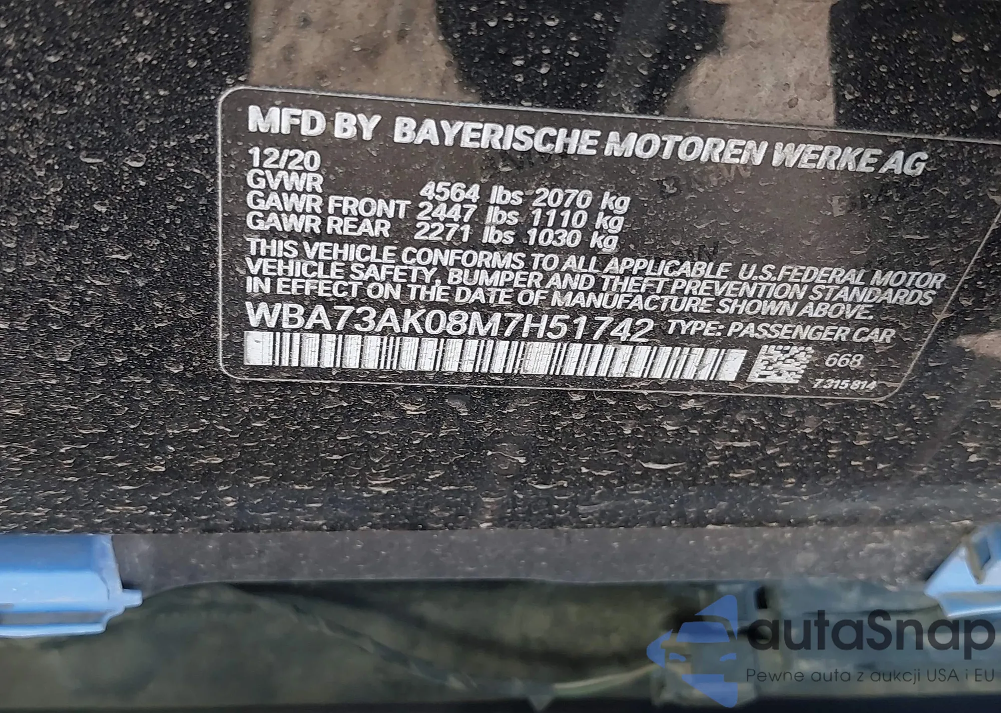 • VIN WBA73AK08M7H51742