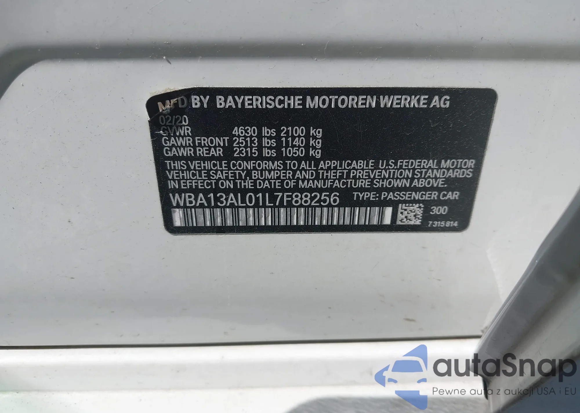 • VIN WBA13AL01L7F88256