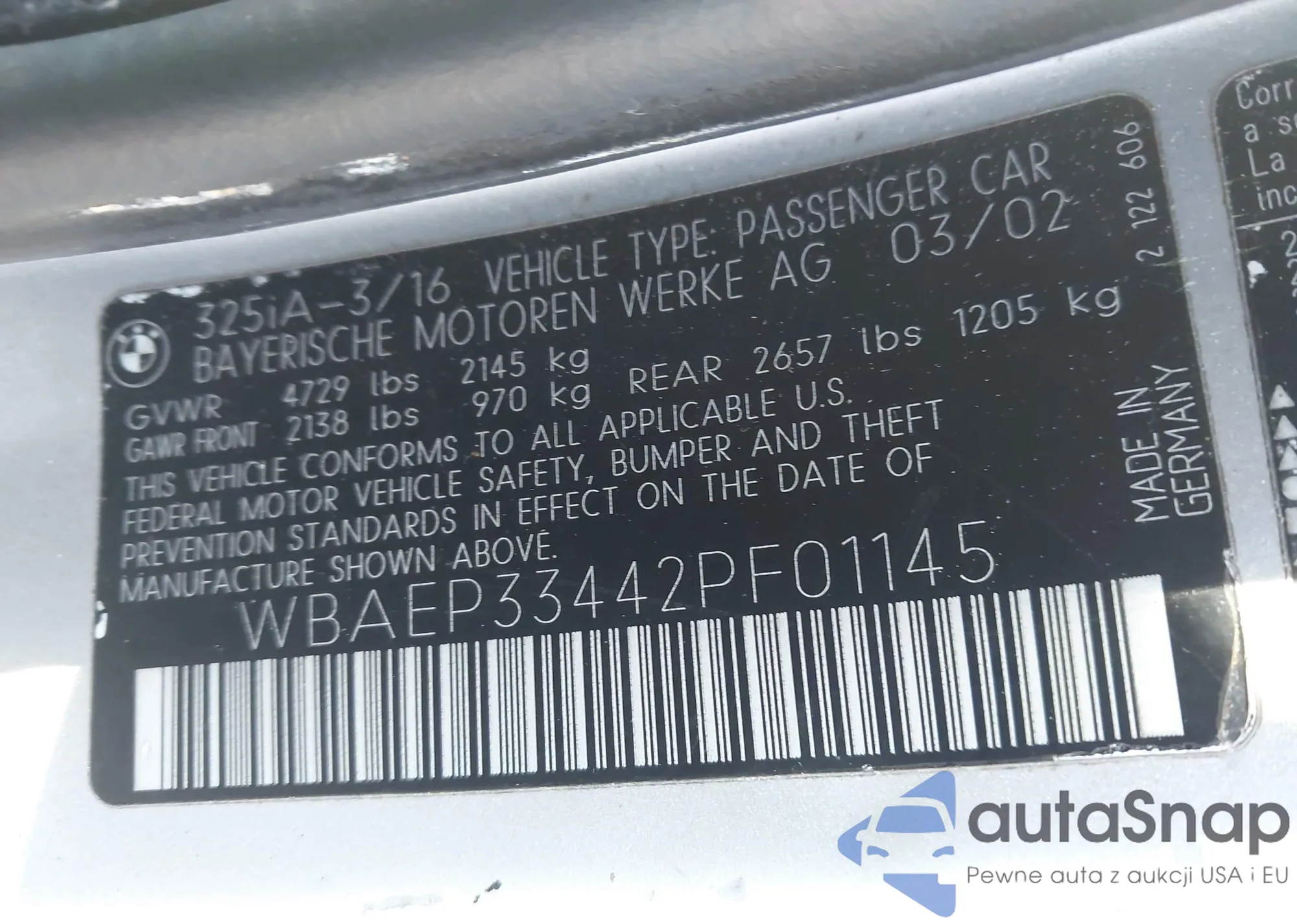 • VIN WBAEP33442PF01145