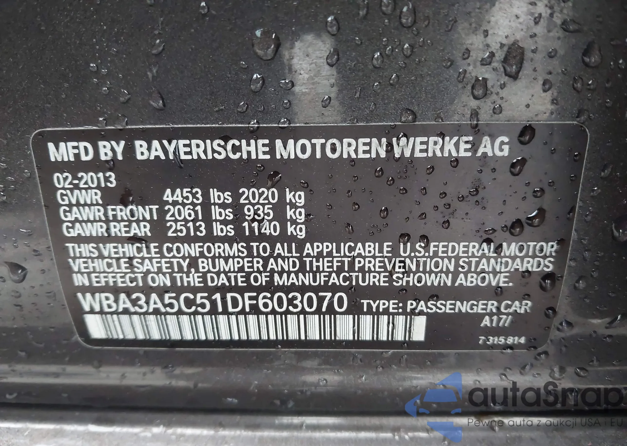 • VIN WBA3A5C51DF603070