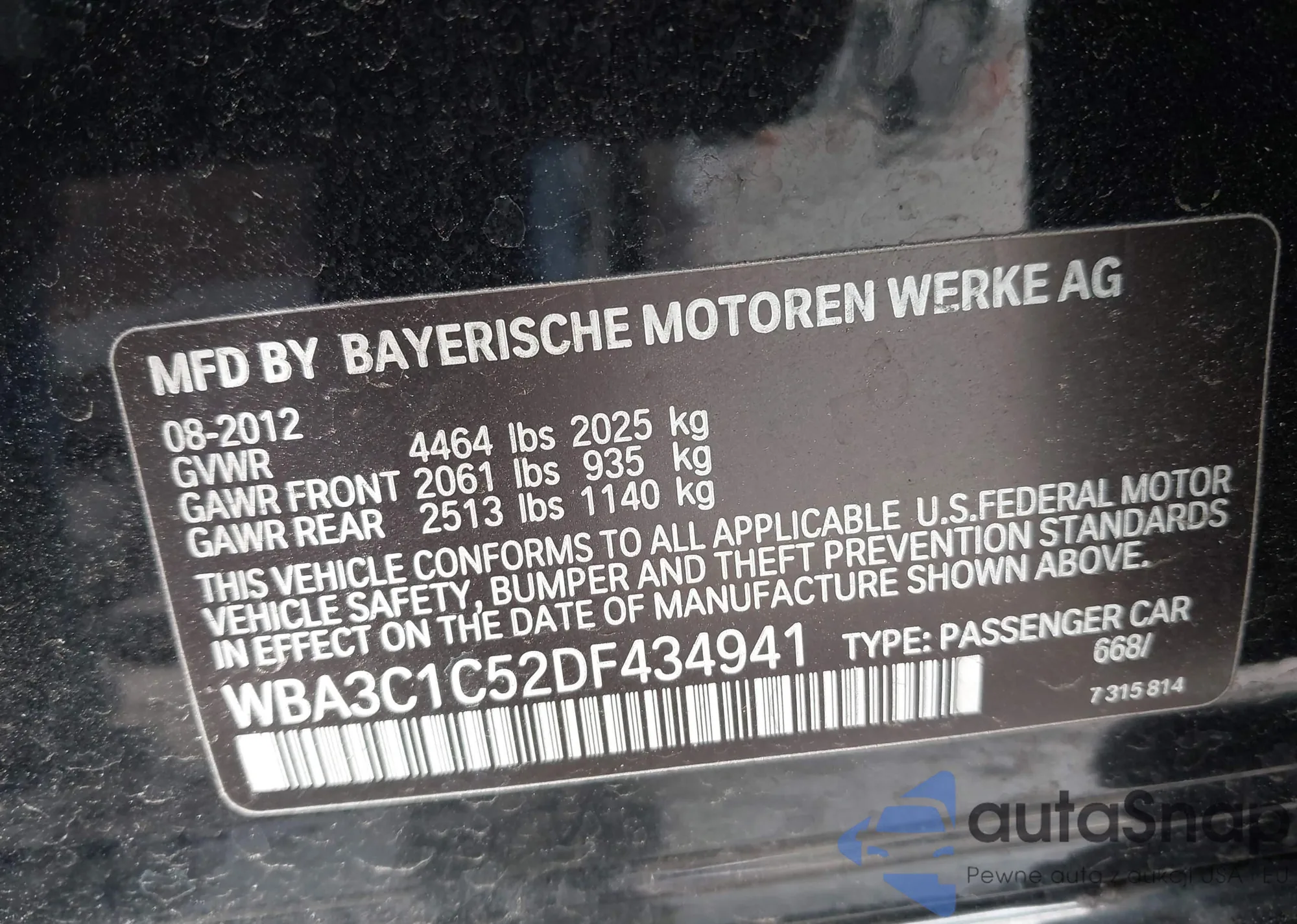 • VIN WBA3C1C52DF434941