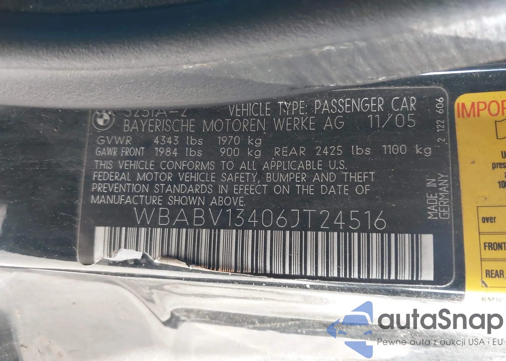 • VIN WBABV13406JT24516