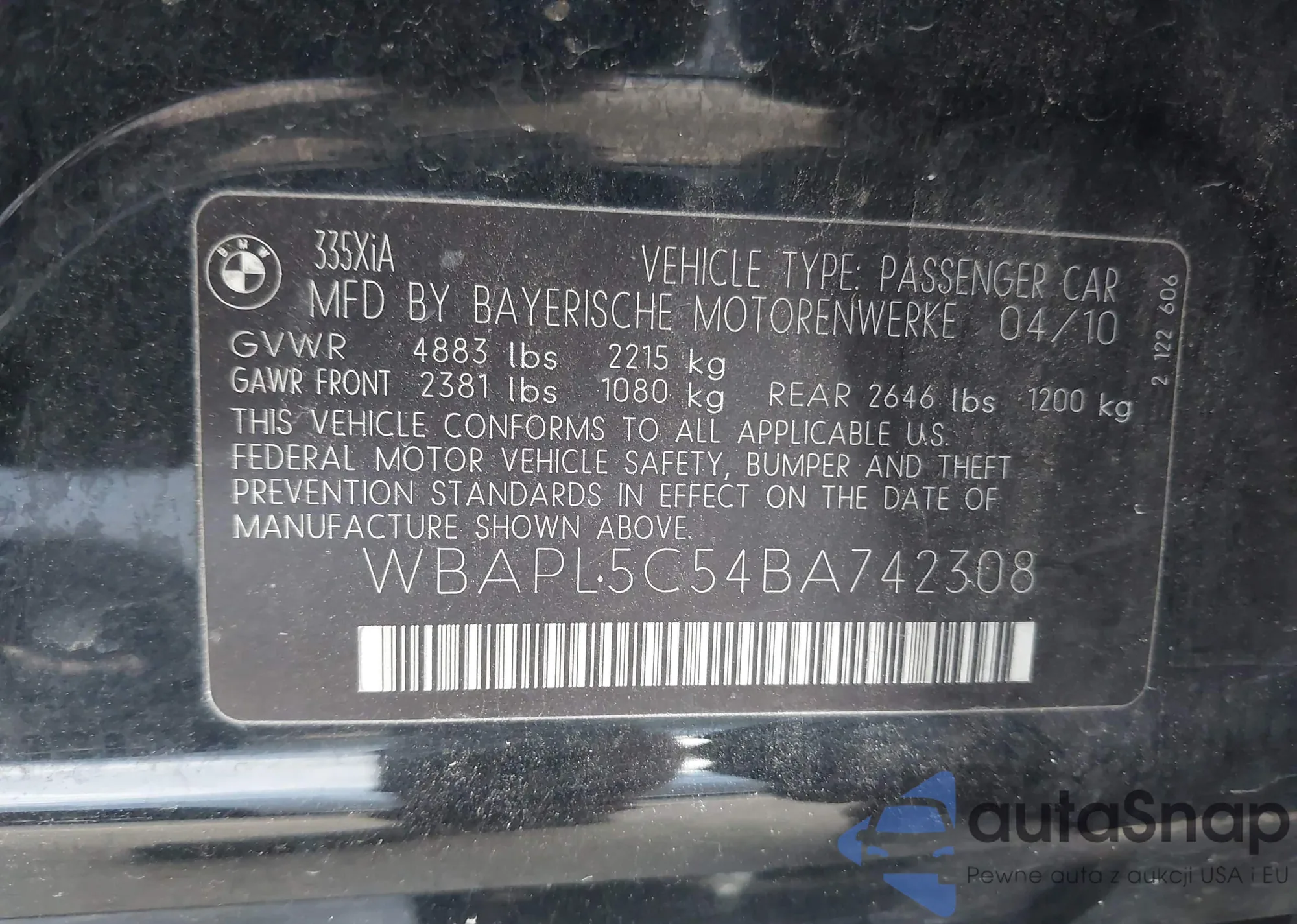 • VIN WBAPL5C54BA742308