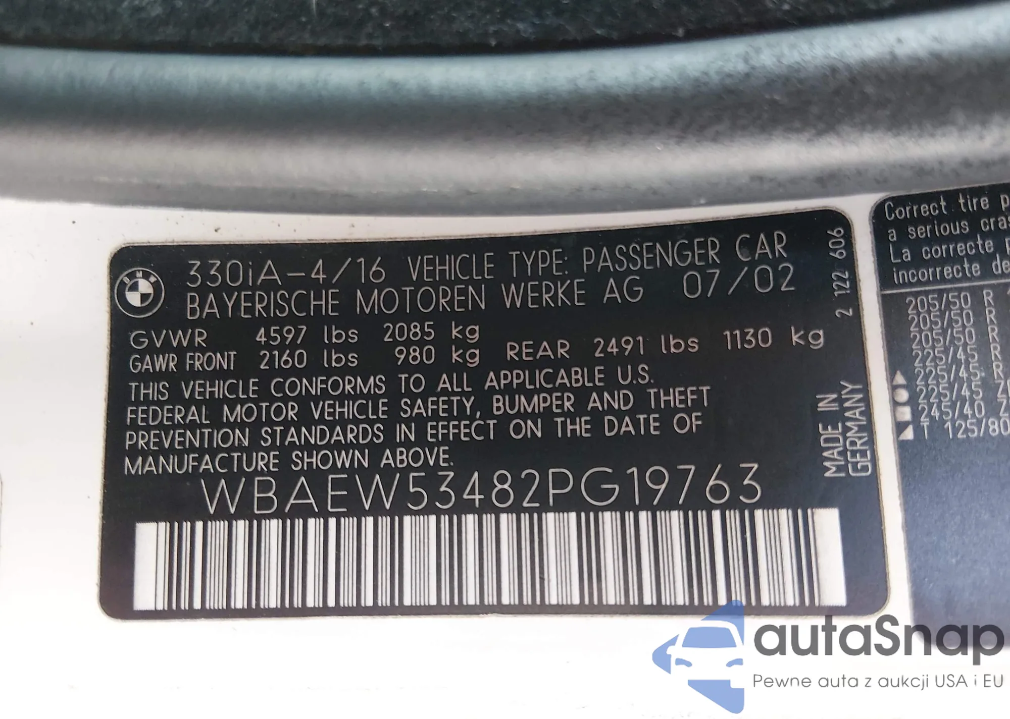 LOT: 44232211 VIN: WBAEW53482PG19763