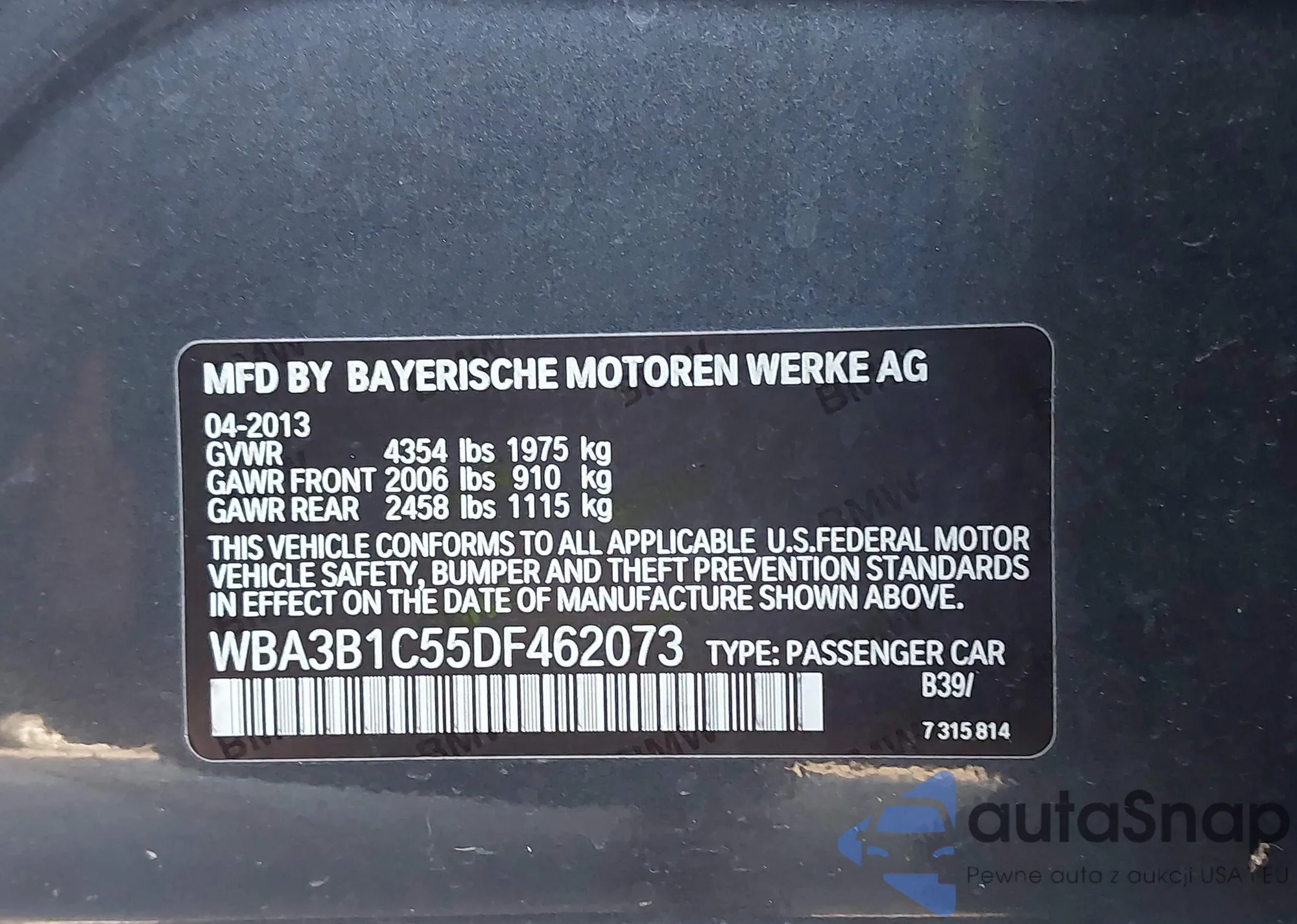• VIN WBA3B1C55DF462073