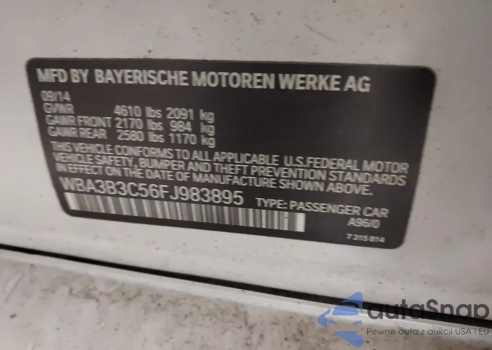 LOT: 44209789 VIN: WBA3B3C56FJ983895