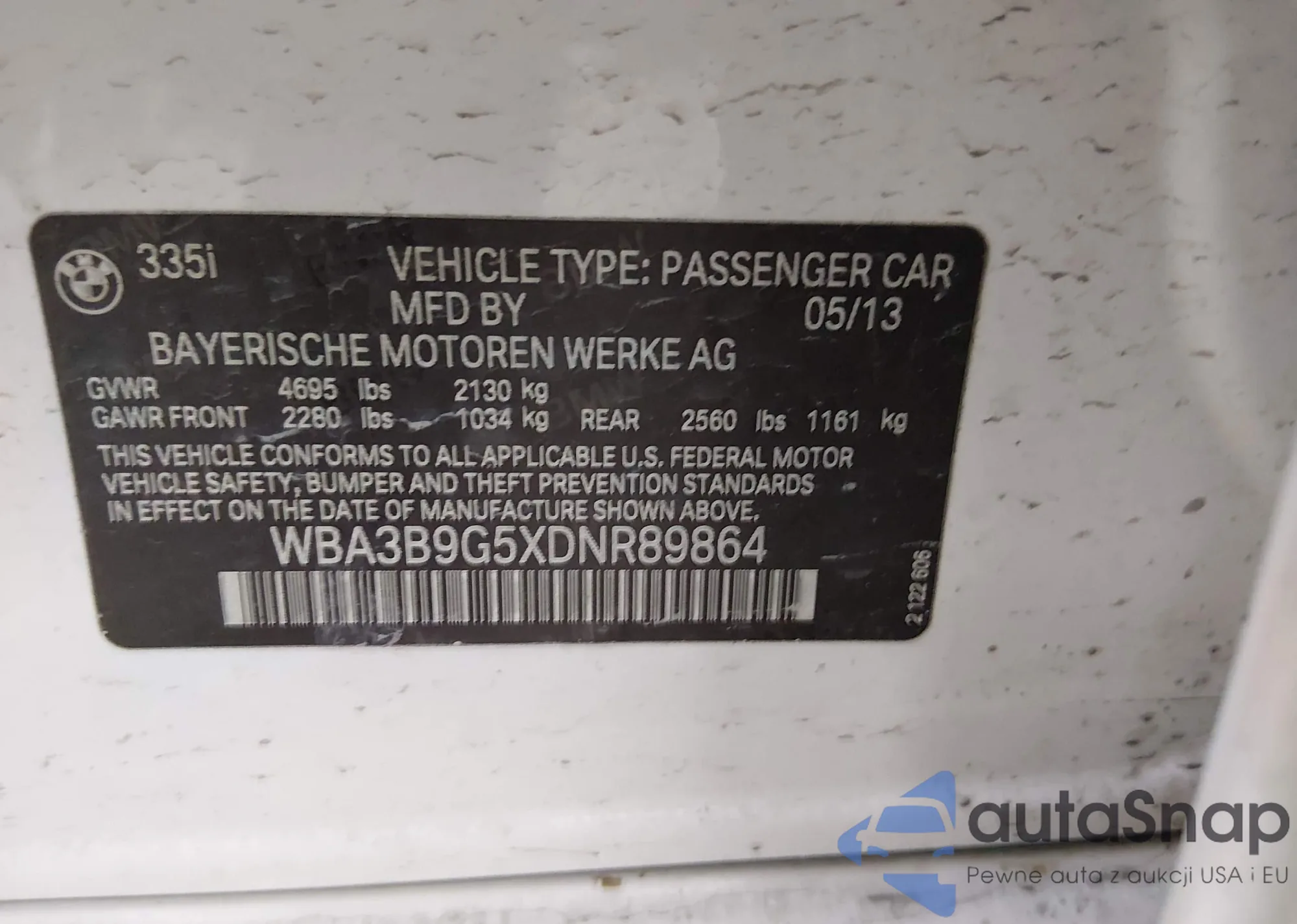 LOT: 44216878 VIN: WBA3B9G5XDNR89864