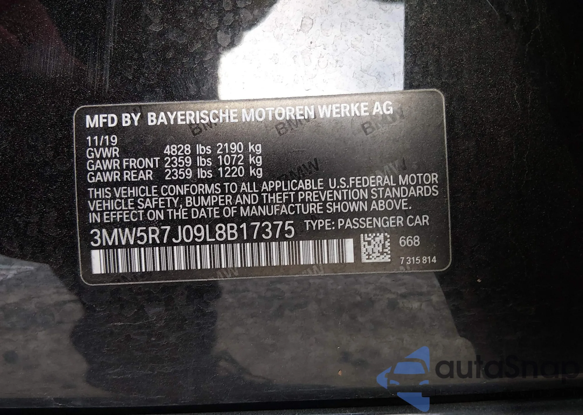 • VIN 3MW5R7J09L8B17375