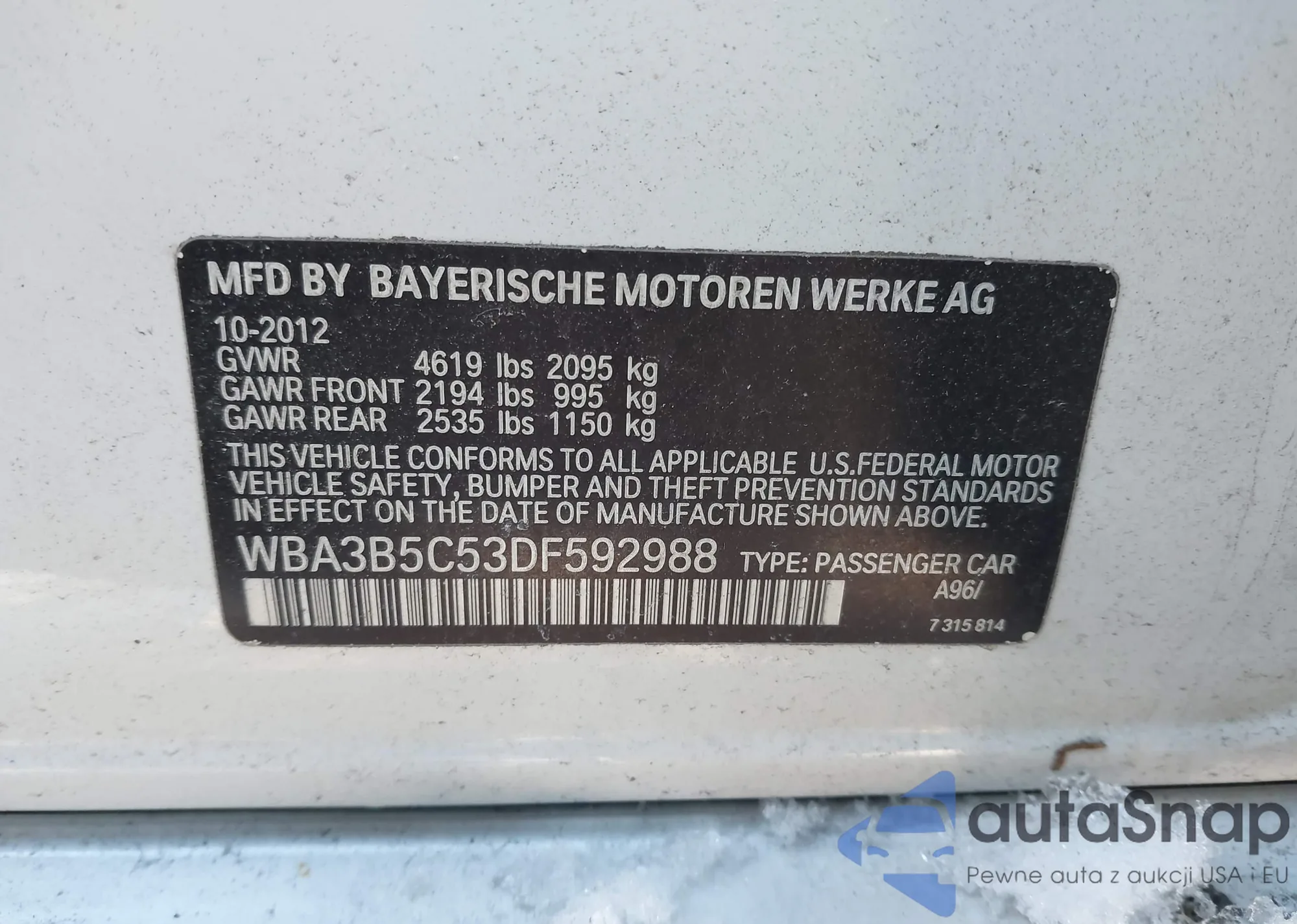 LOT: 44266535 VIN: WBA3B5C53DF592988