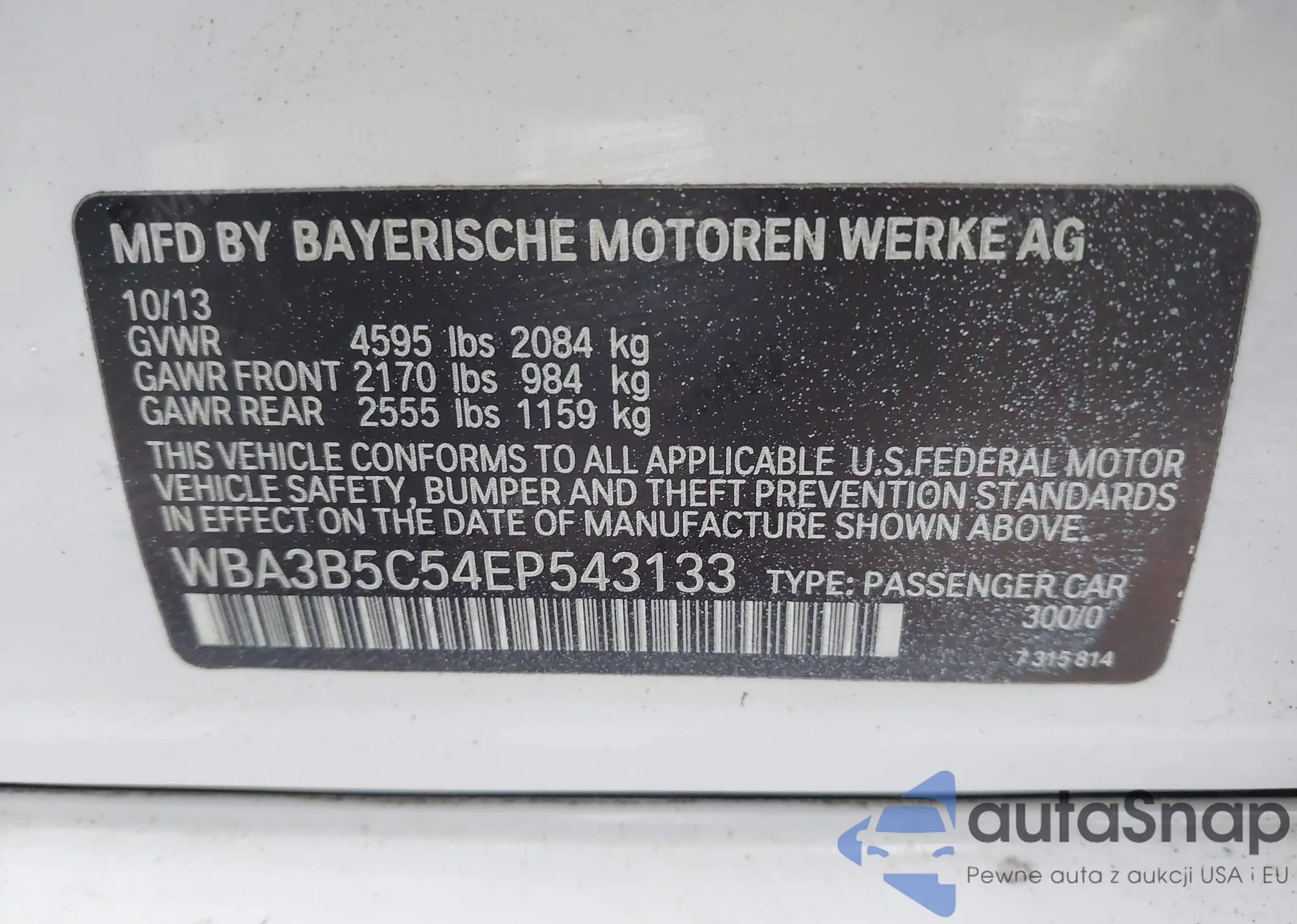 LOT: 43820858 VIN: WBA3B5C54EP543133