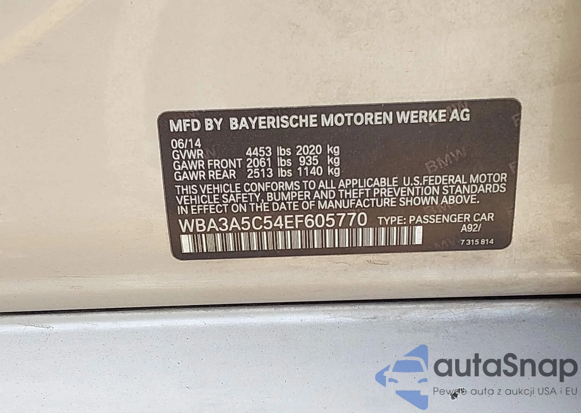 LOT: 43950652 VIN: WBA3A5C54EF605770