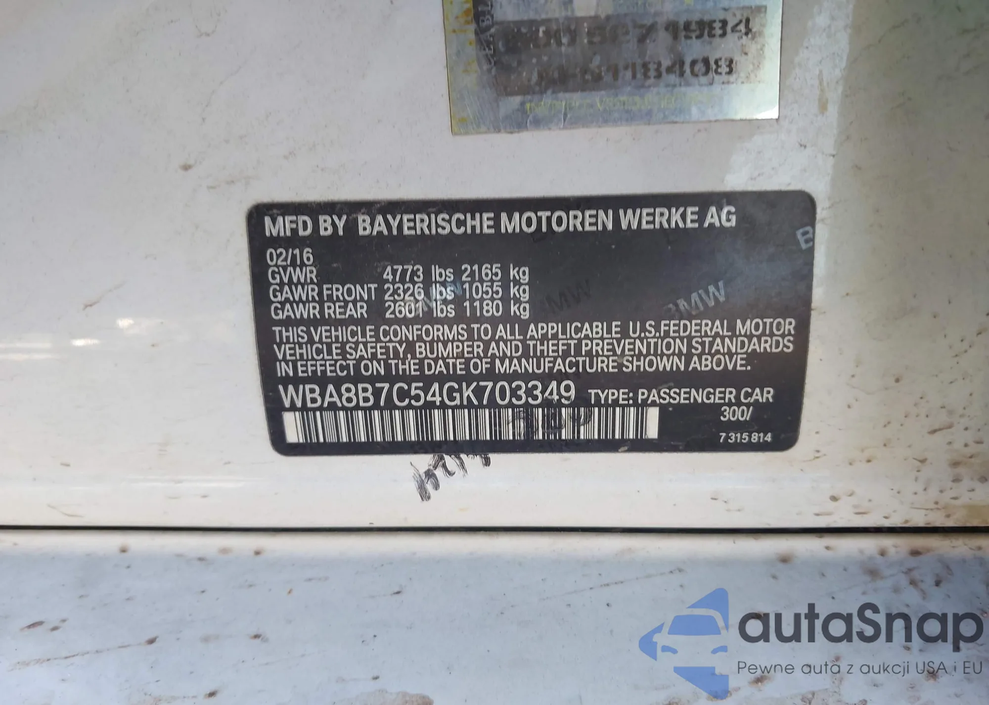 • VIN WBA8B7C54GK703349