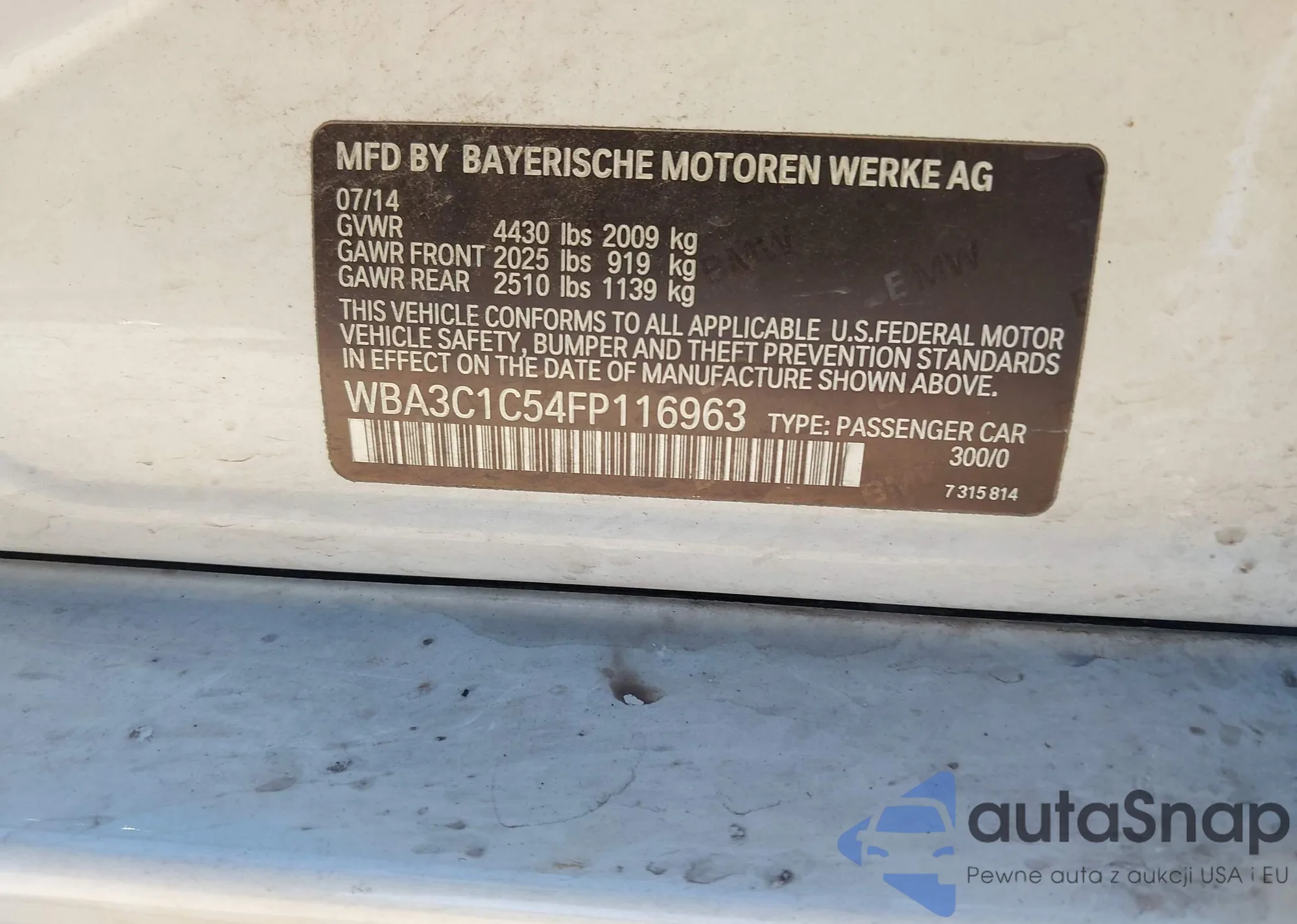 LOT: 43874948 VIN: WBA3C1C54FP116963