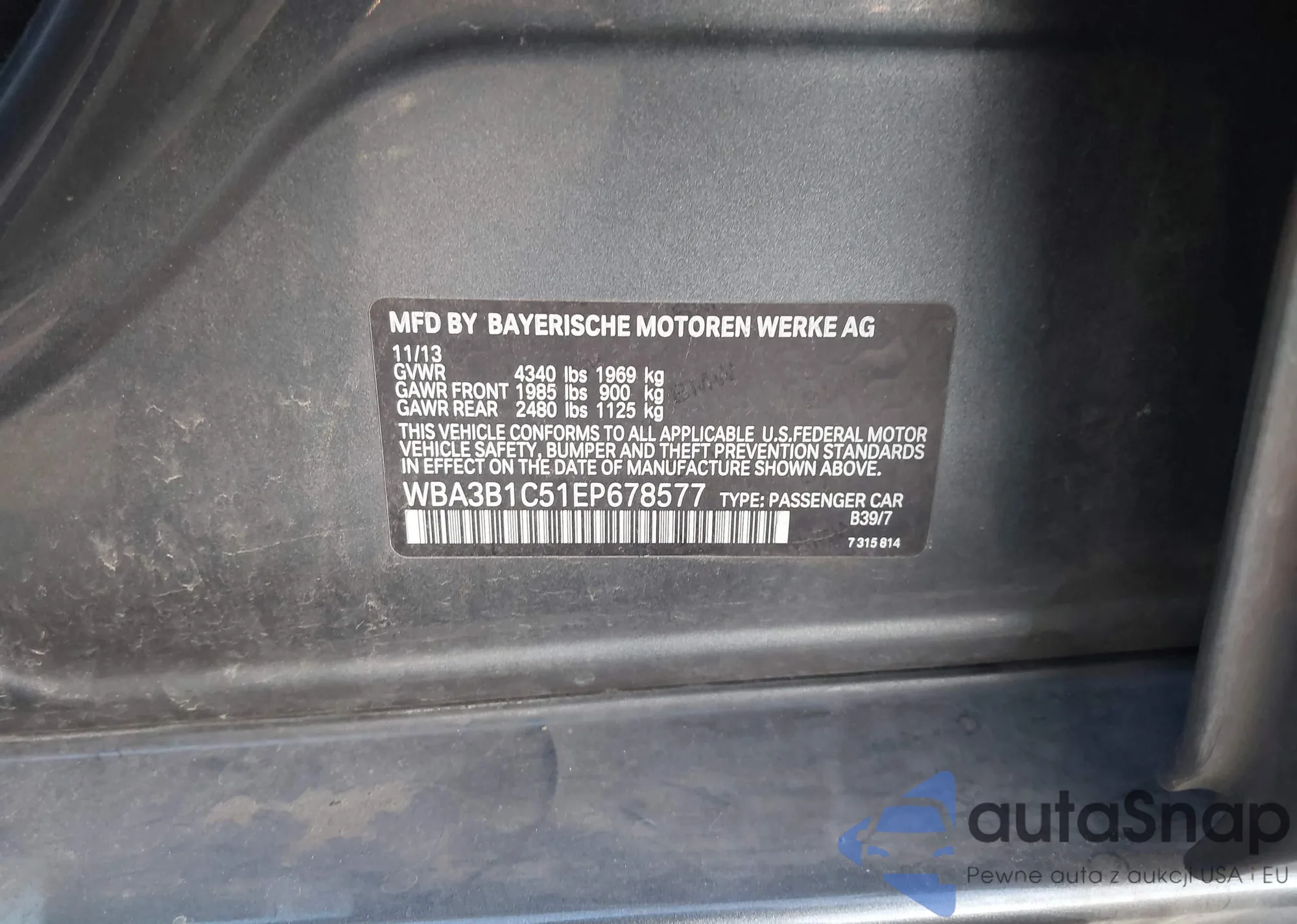 LOT: 43990255 VIN: WBA3B1C51EP678577