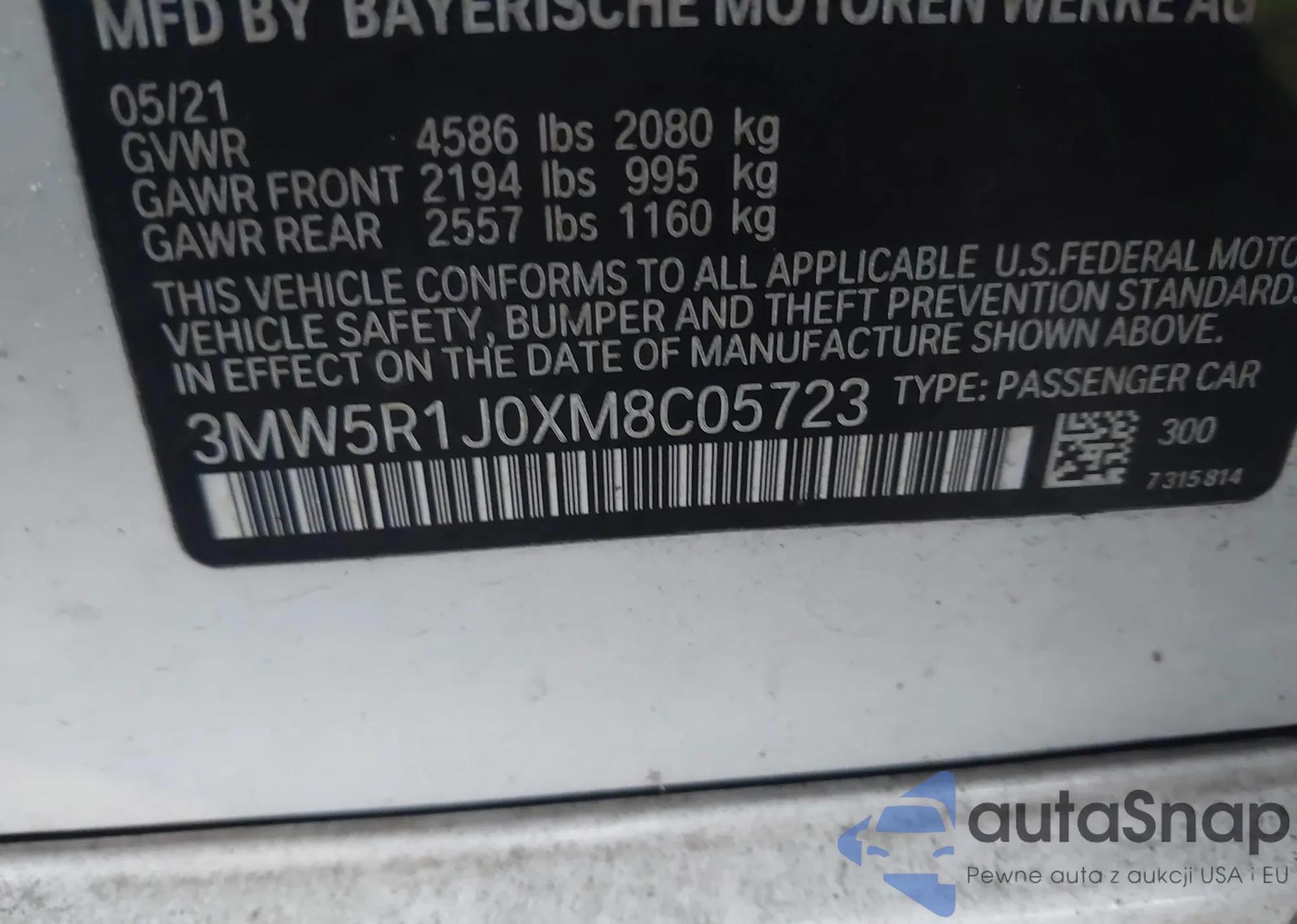 • VIN 3MW5R1J0XM8C05723