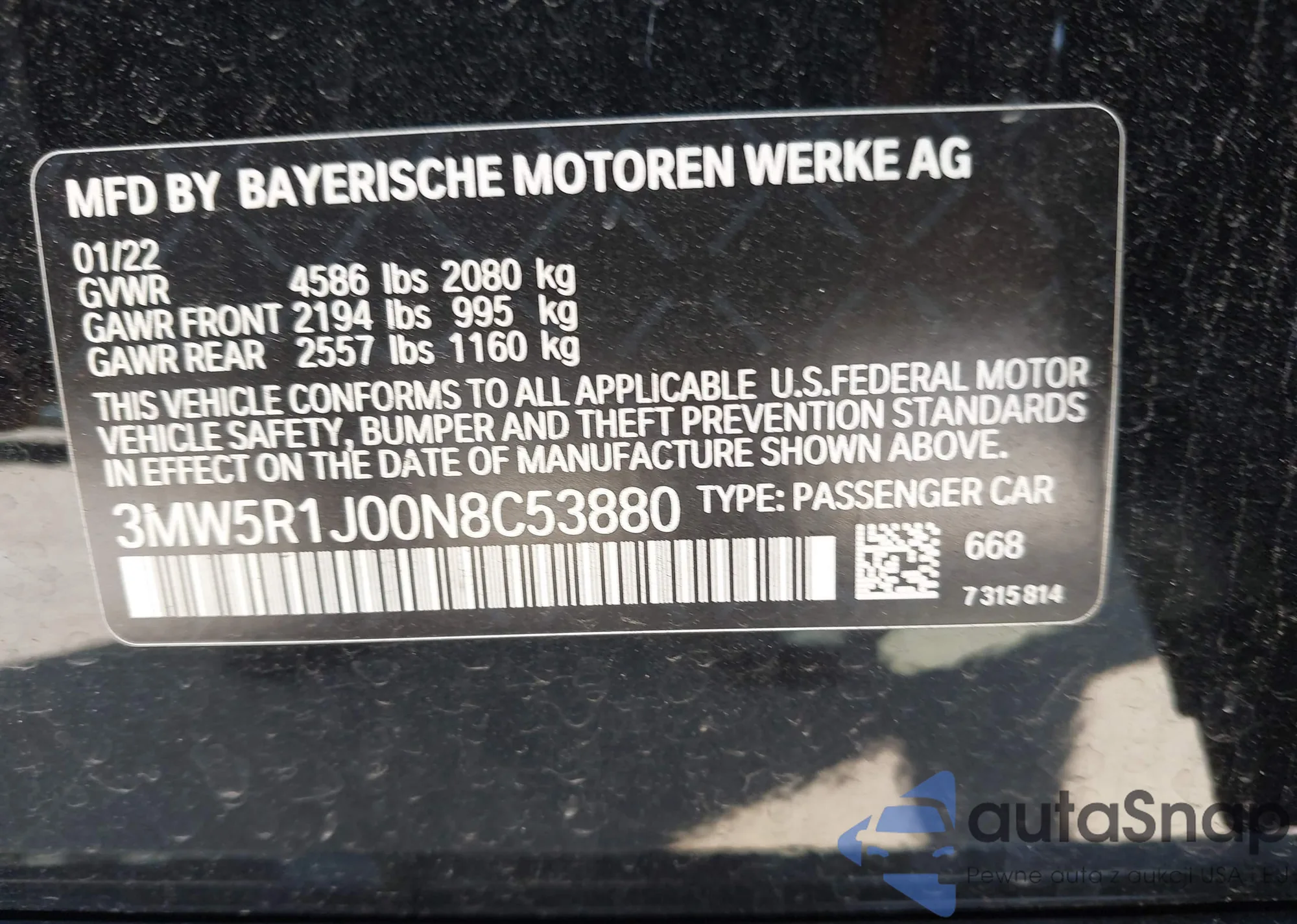 • VIN 3MW5R1J00N8C53880