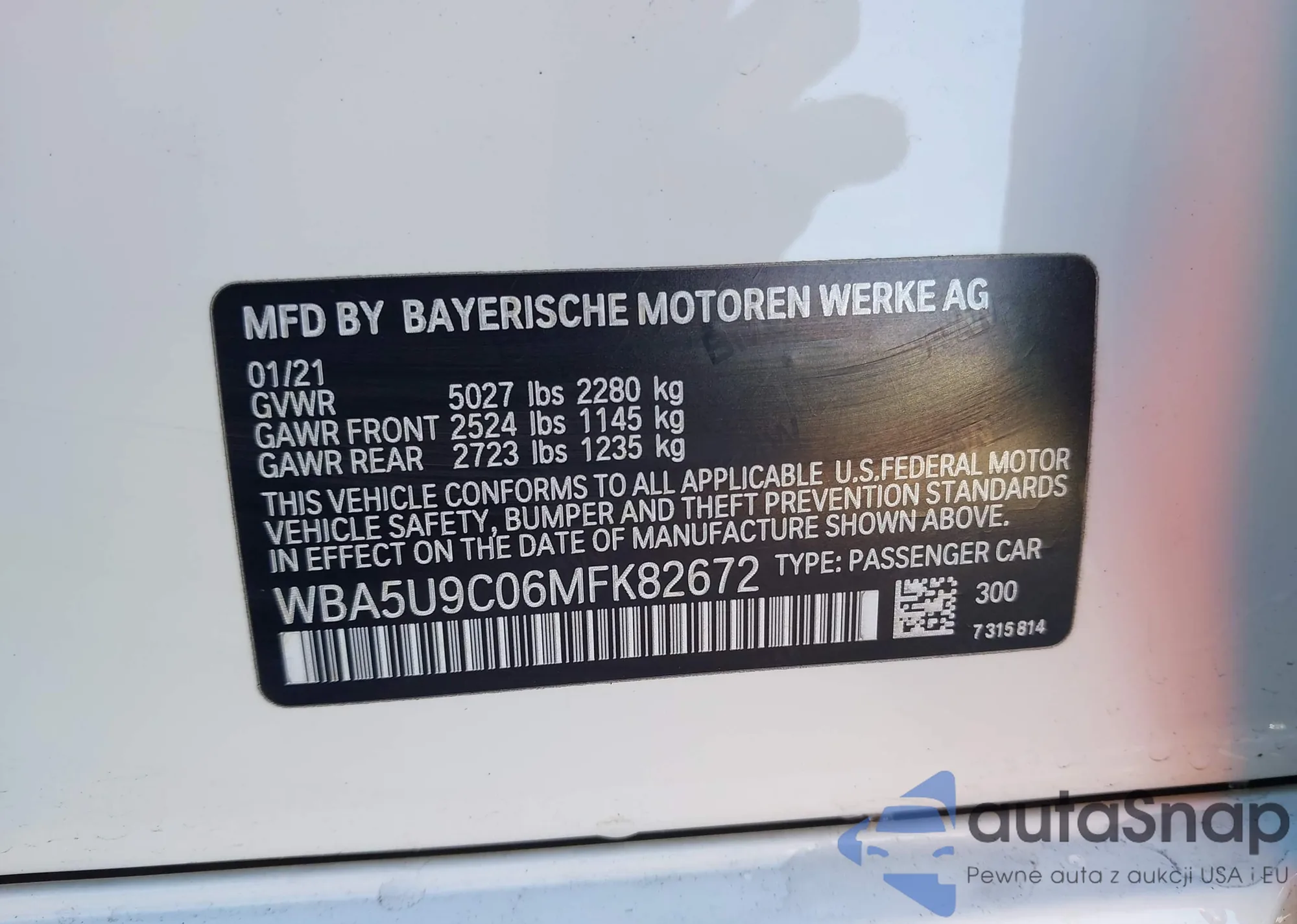 • VIN WBA5U9C06MFK82672