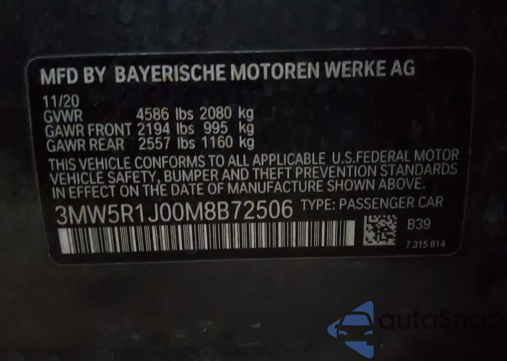 • VIN 3MW5R1J00M8B72506