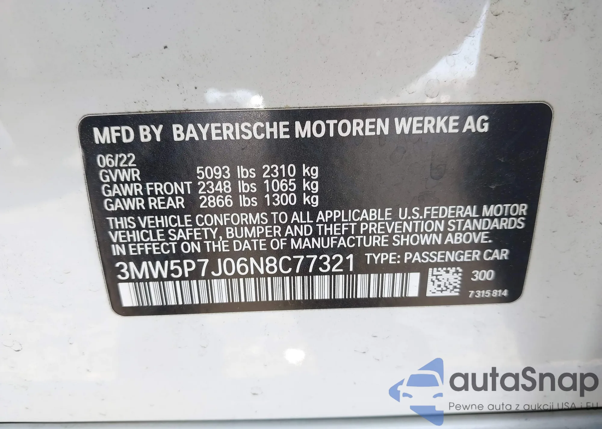 • VIN 3MW5P7J06N8C77321