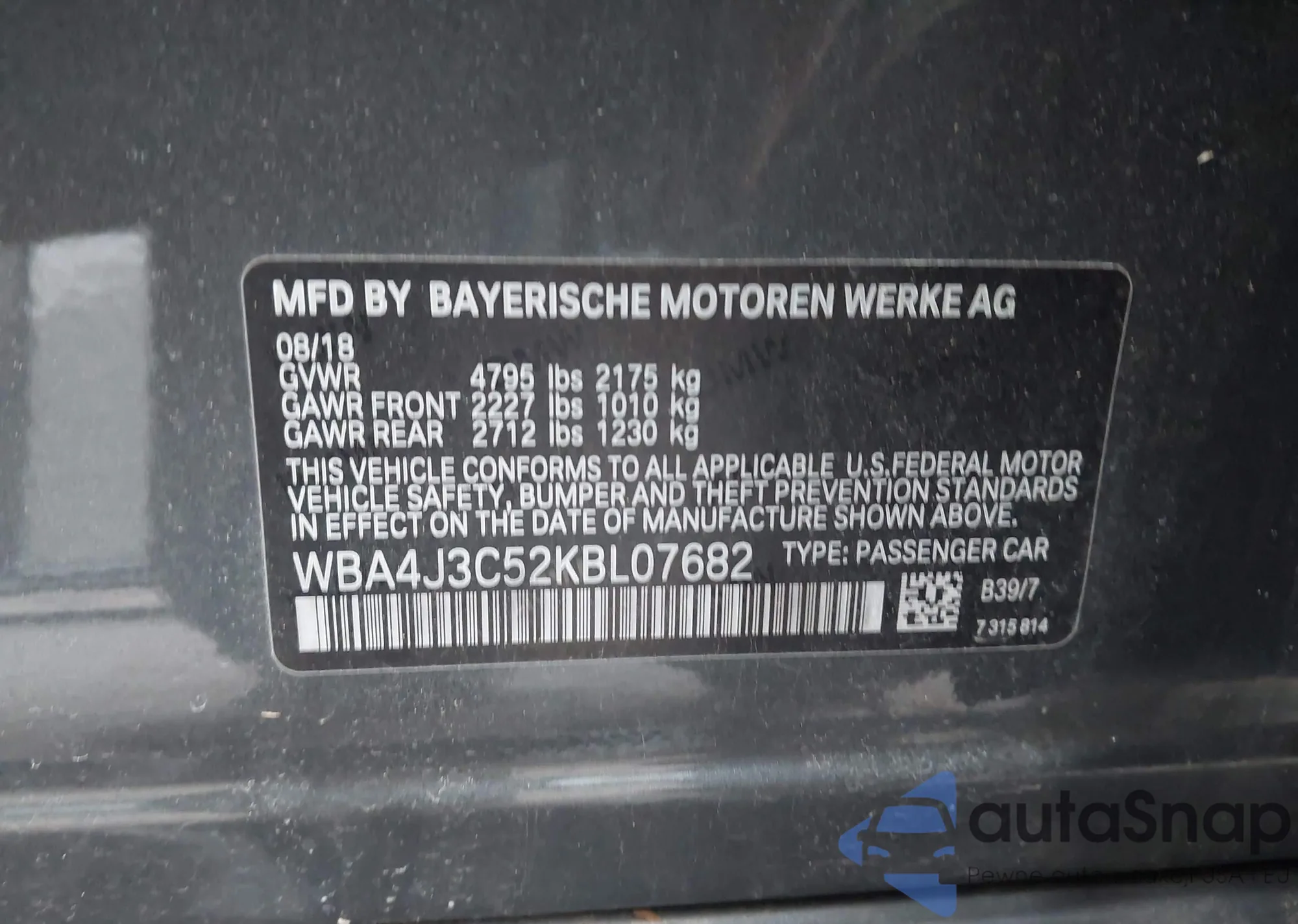 • VIN WBA4J3C52KBL07682
