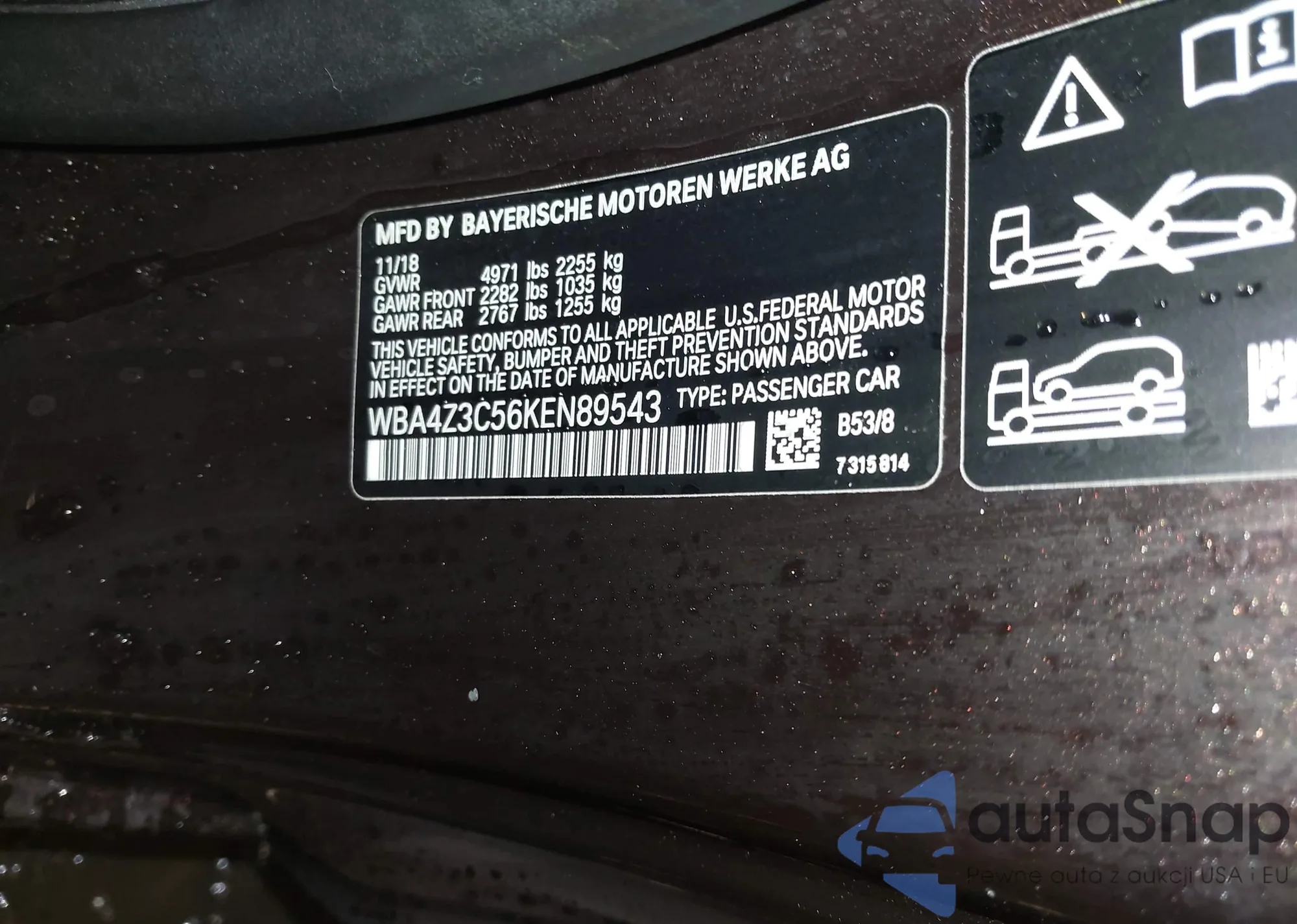 • VIN WBA4J1C56KBM19017