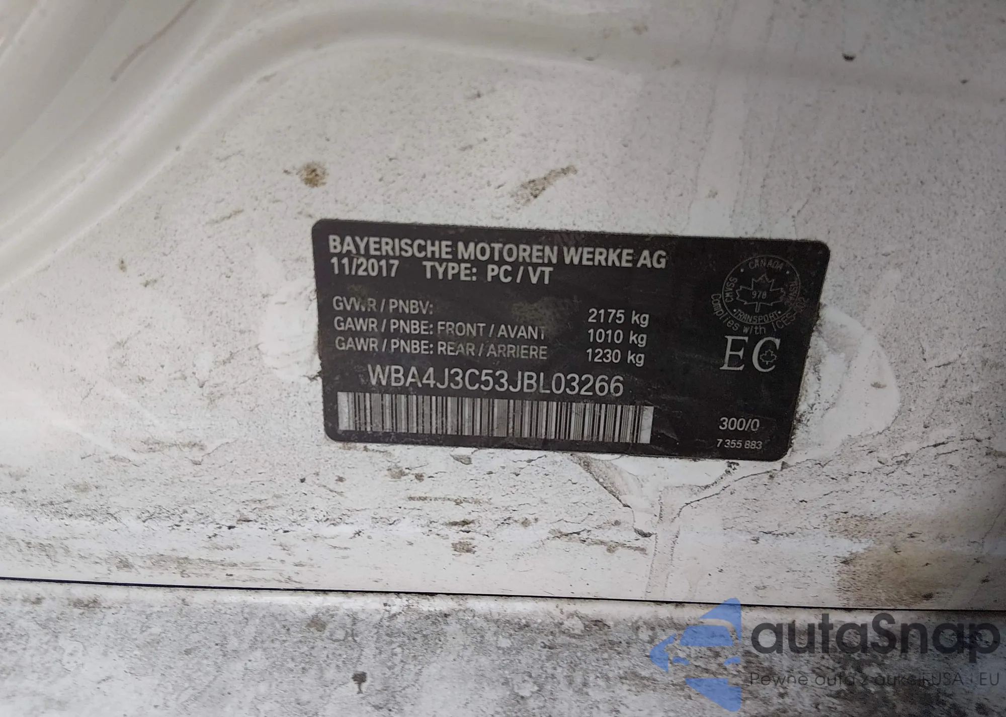 • VIN WBA4J3C53JBL03266