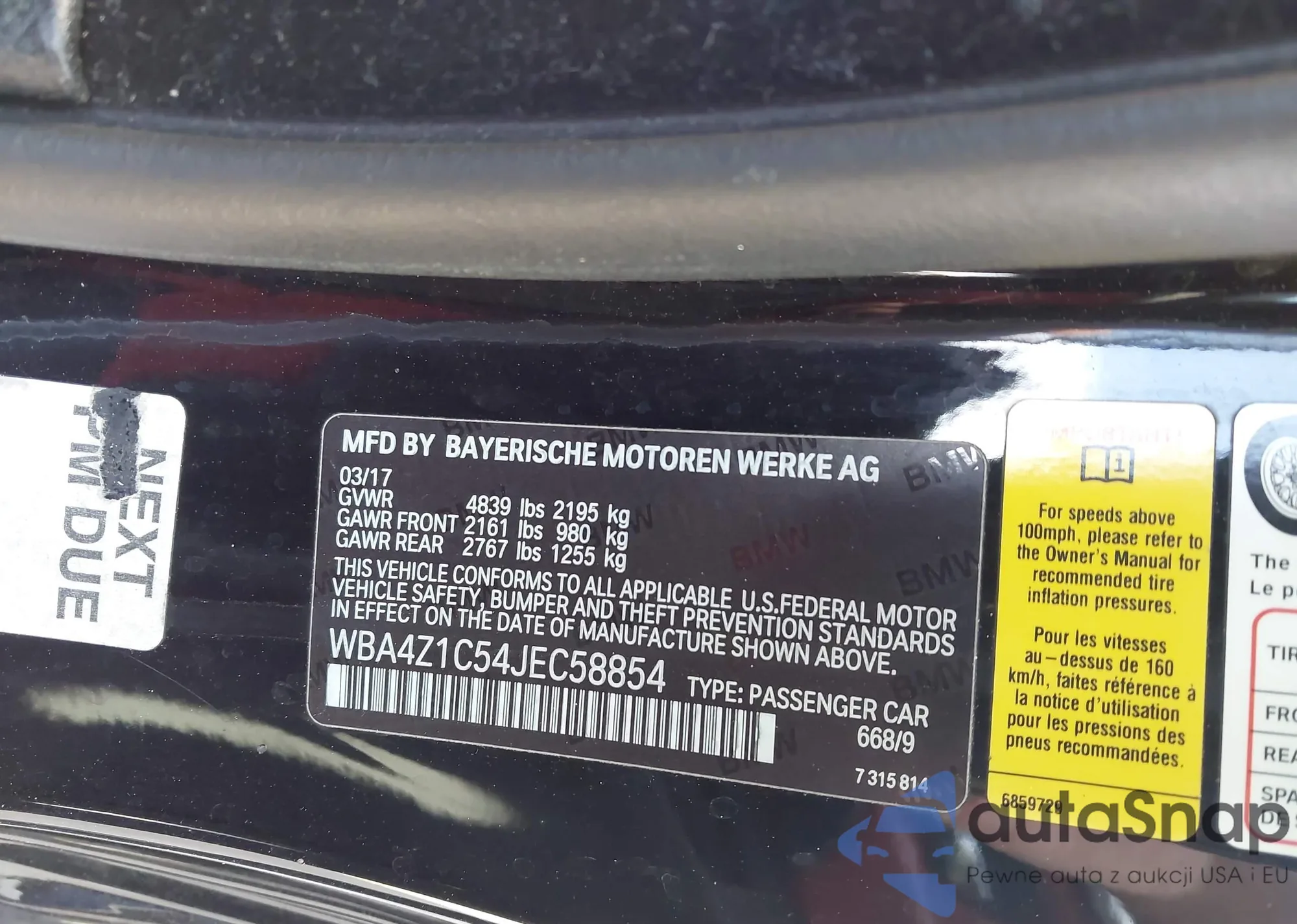LOT: 91001755 VIN: WBA4W5C54JAA49847