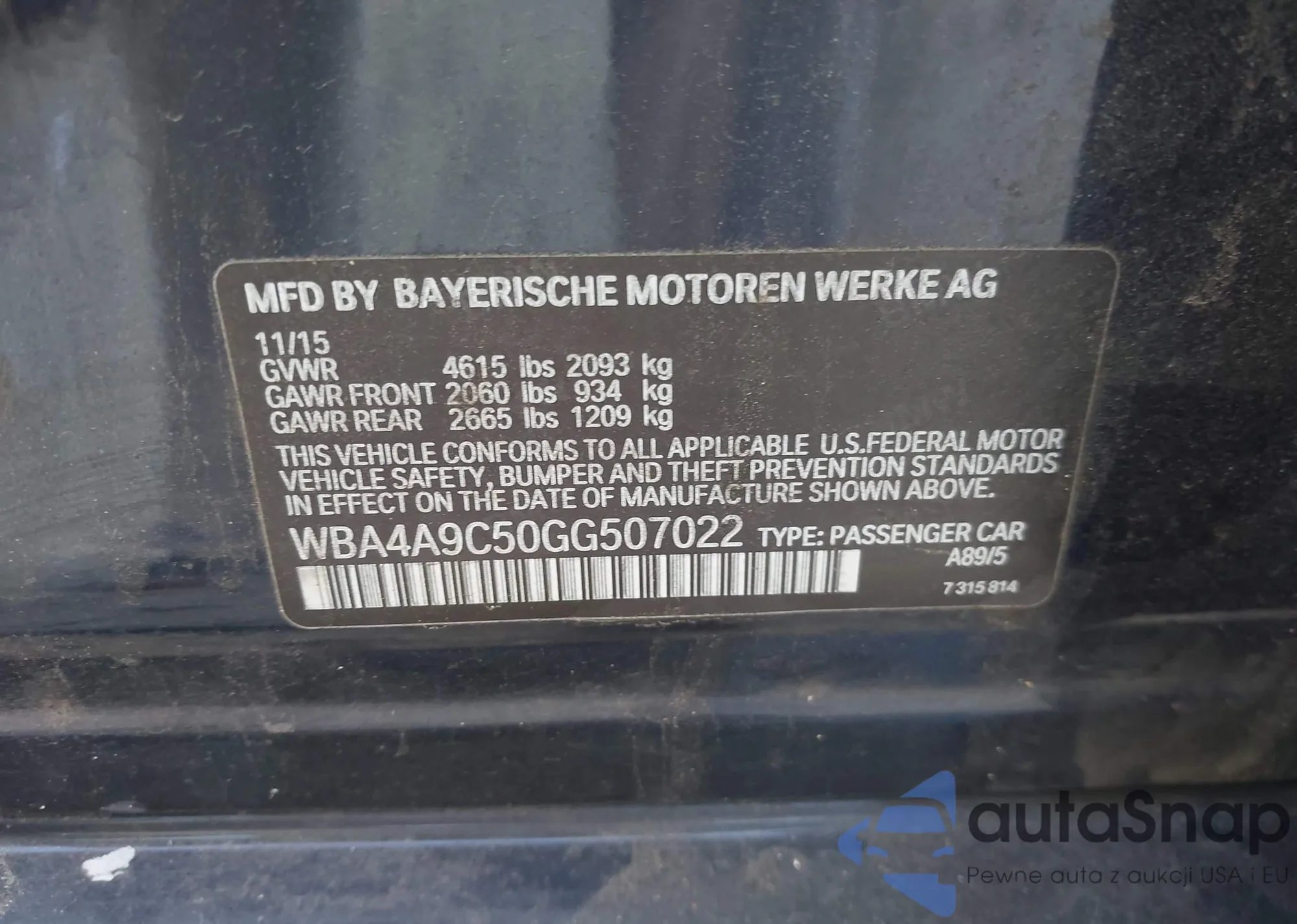 • VIN WBA4A9C50GG507022