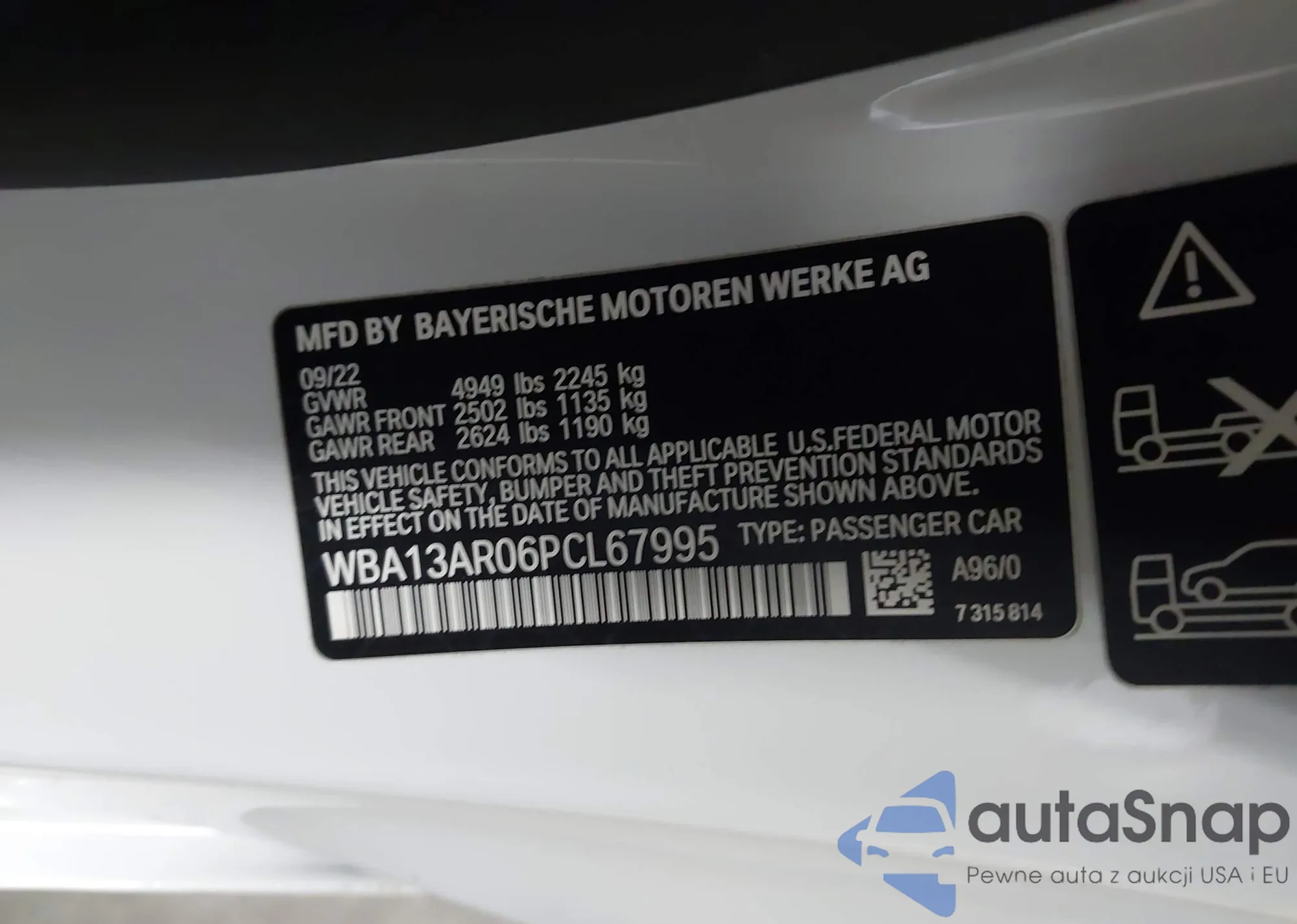 • VIN WBA13AR06PCL67995