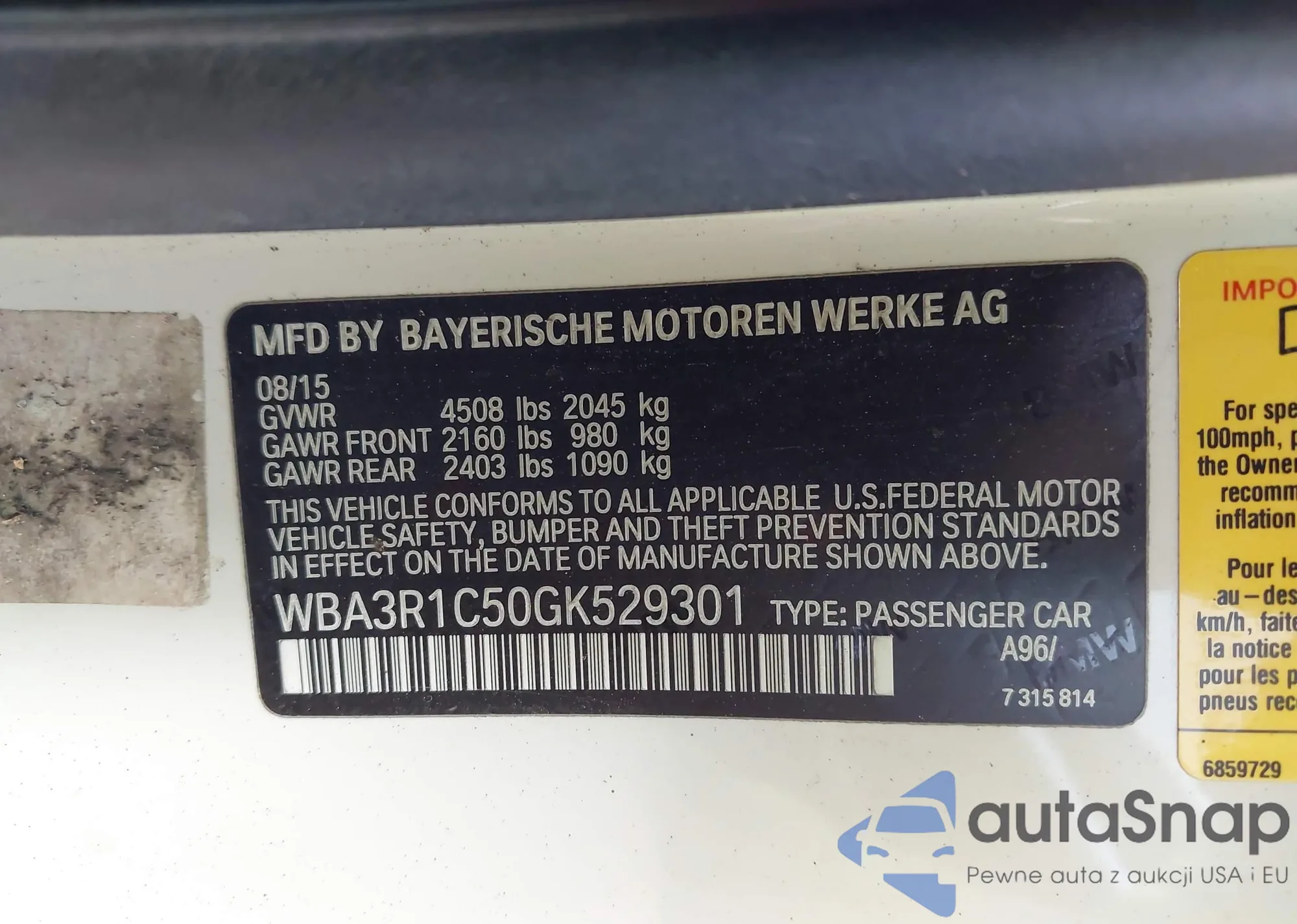 LOT: 44268910 VIN: WBA3R1C50GK529301