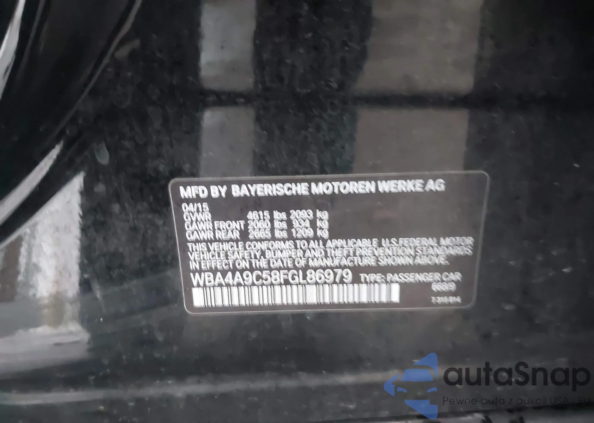 • VIN WBA4A9C58FGL86979