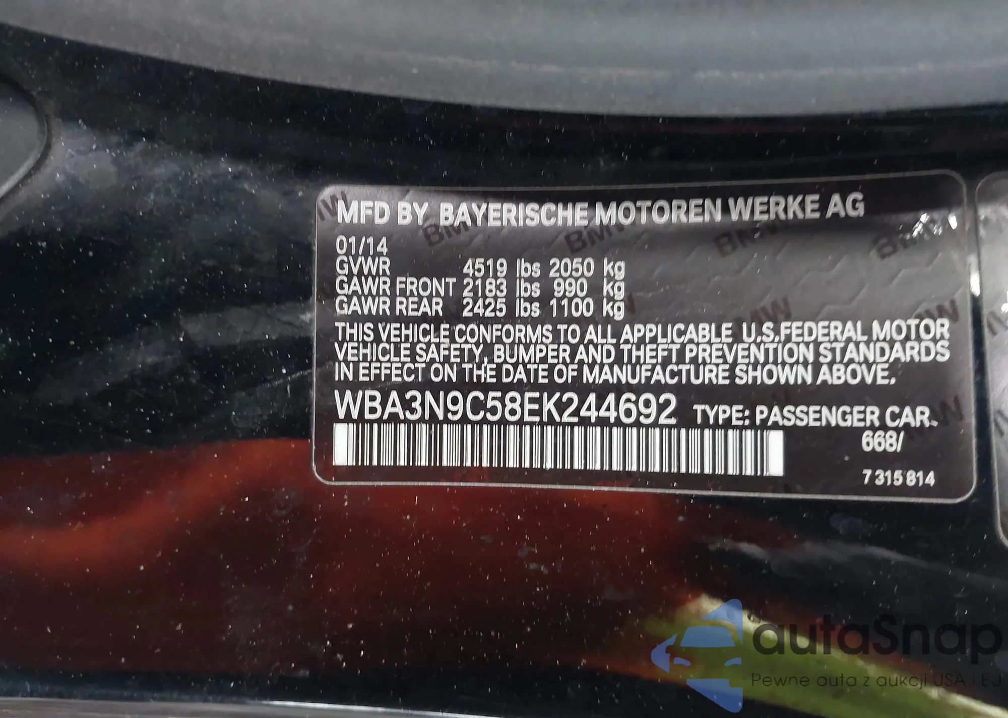 LOT: 44397060 VIN: WBA3N9C58EK244692