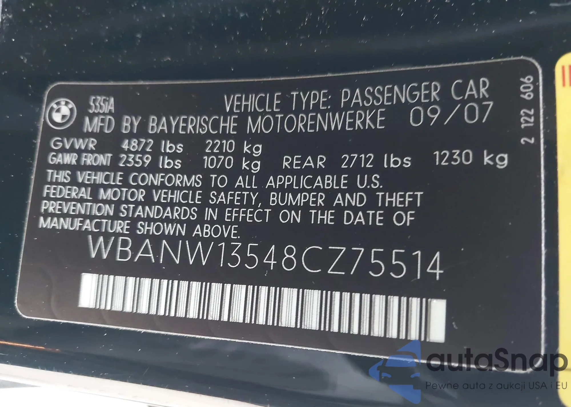 • VIN WBANW13548CZ75514