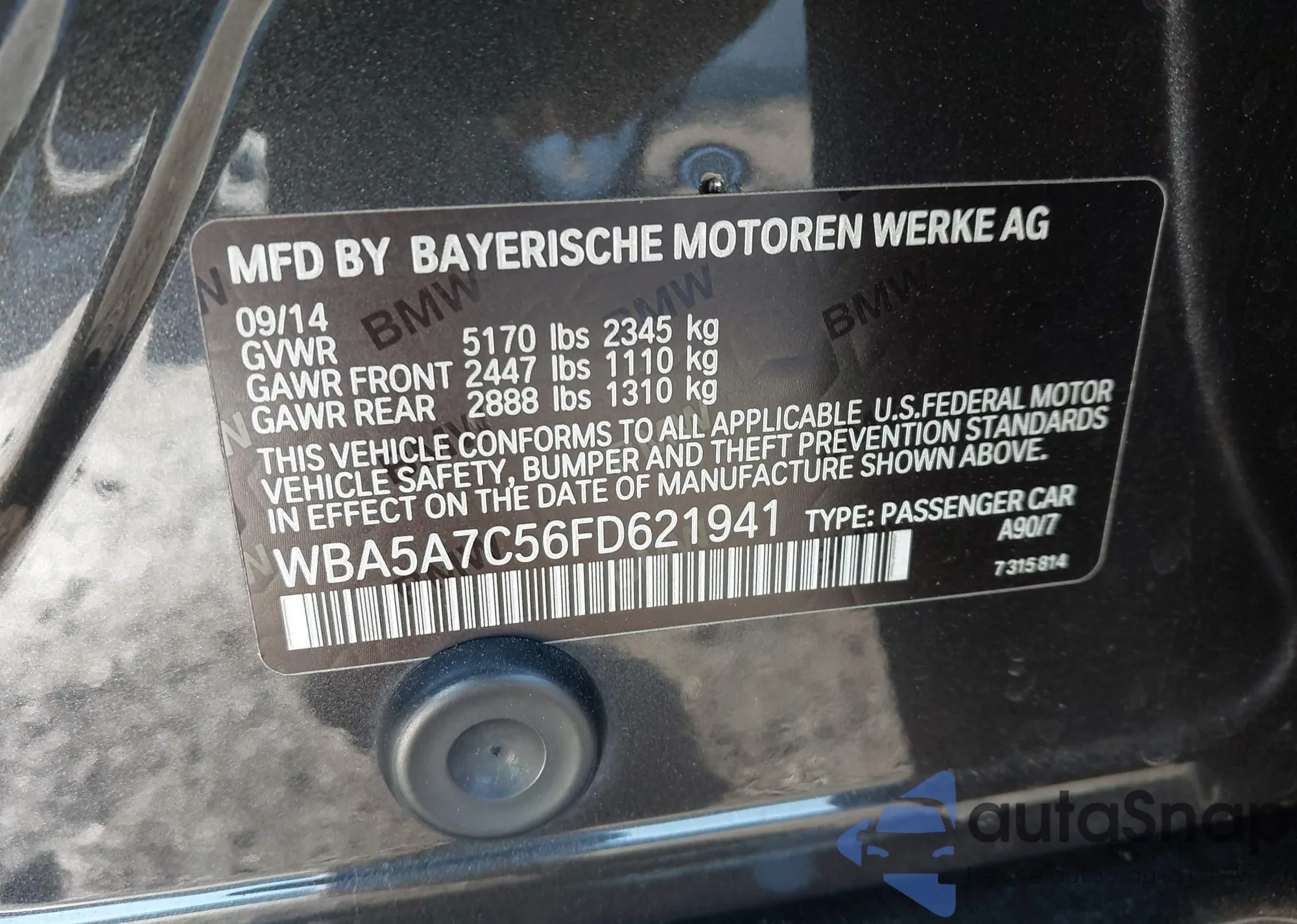 • VIN WBA5A7C56FD621941