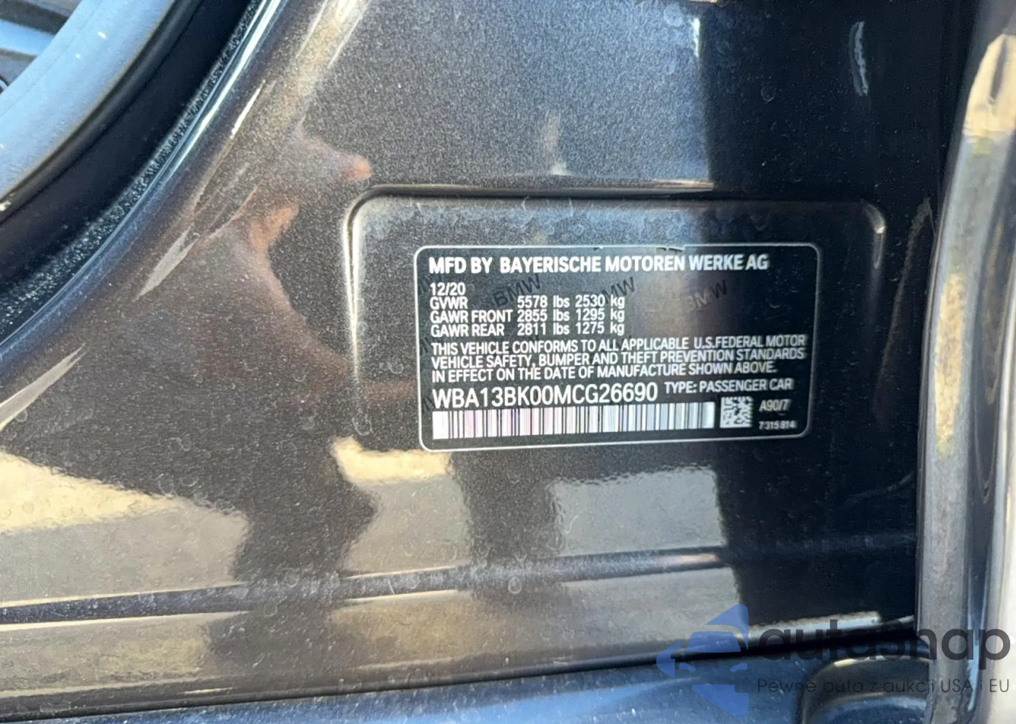LOT: 75153625 VIN: WBA13BK00MCG26690