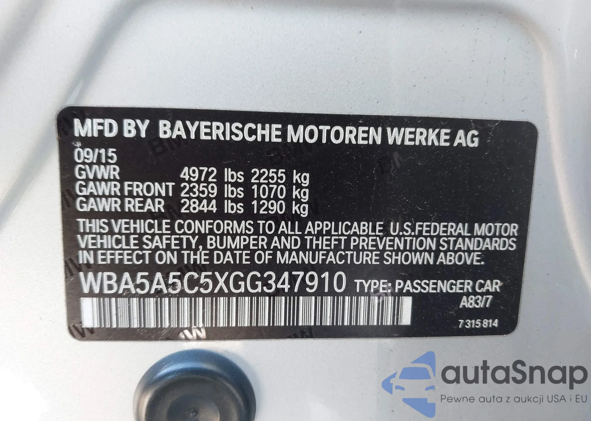 • VIN WBA5A5C5XGG347910