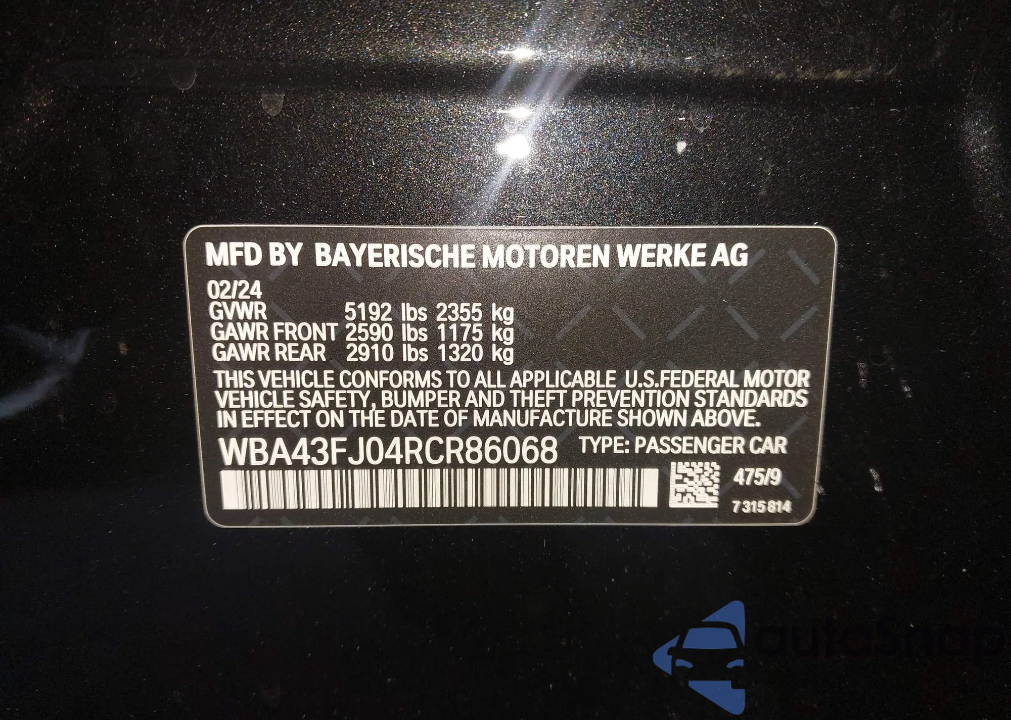 LOT: 43809420 VIN: WBA43FJ04RCR86068
