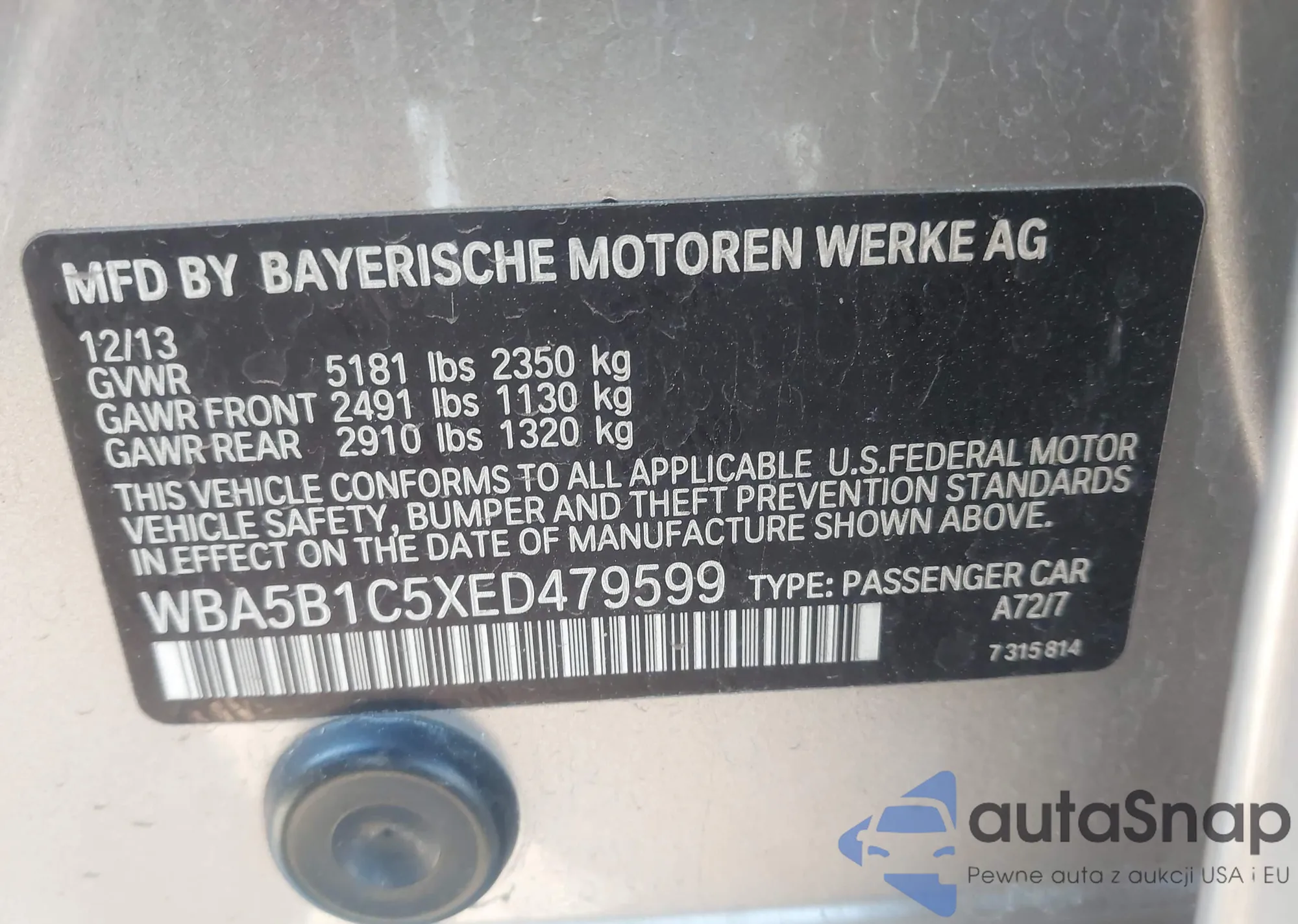 • VIN WBA5B1C5XED479599