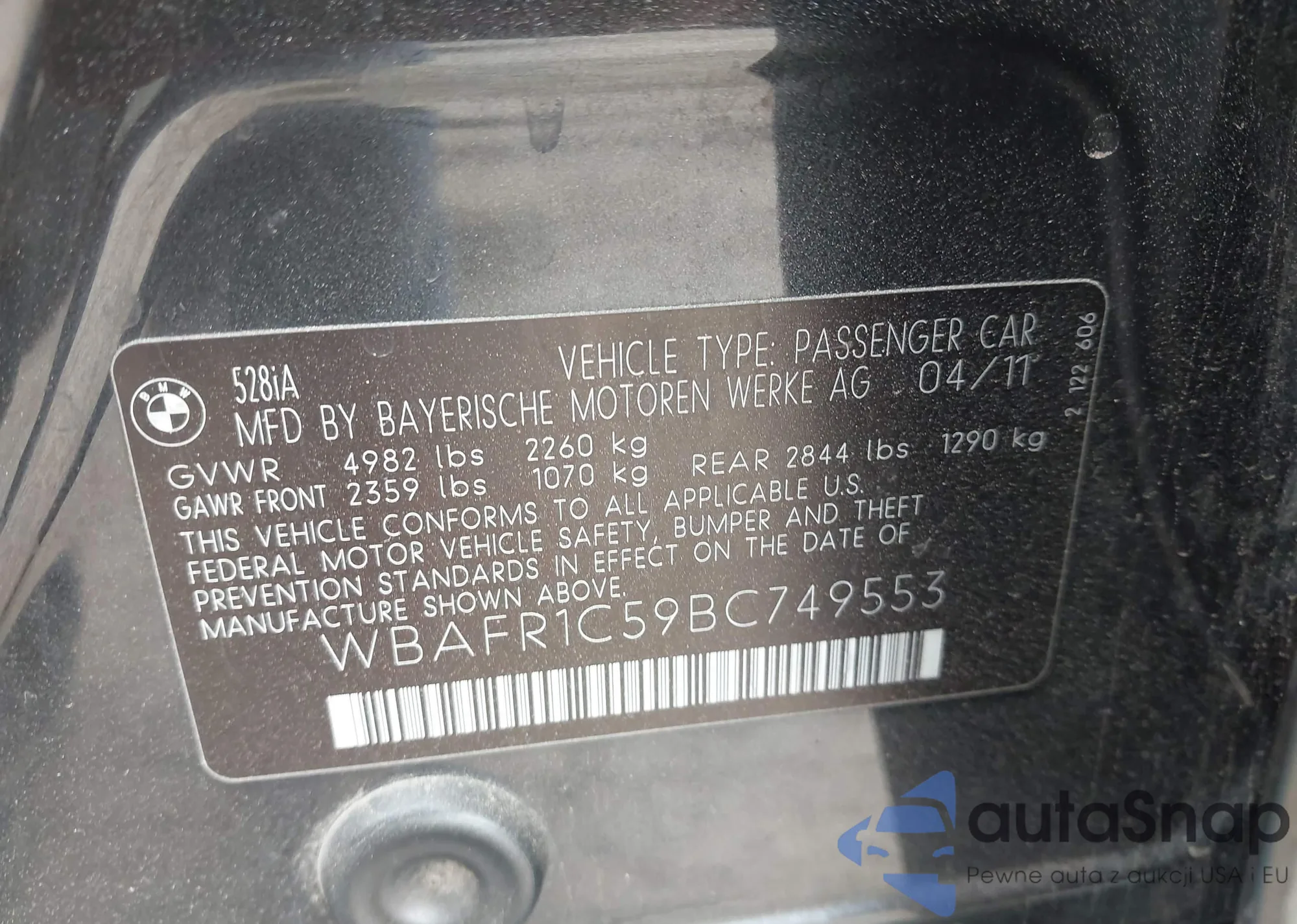 • VIN WBAFR1C59BC749553