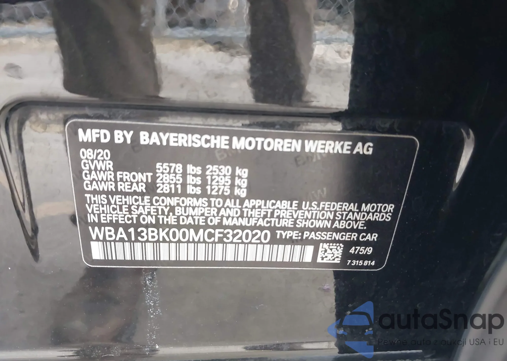 • VIN WBA13BK00MCF32020