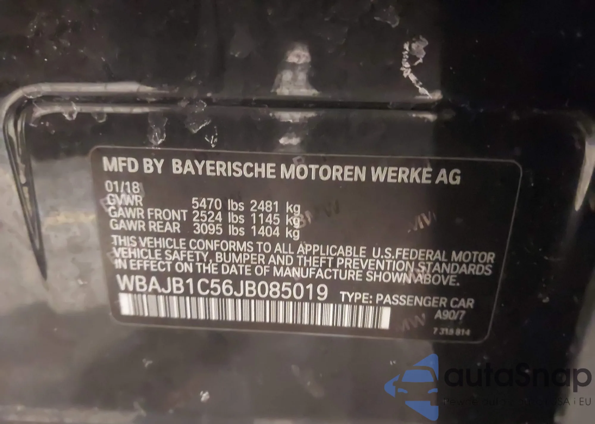 • VIN WBAJA7C58JG908428