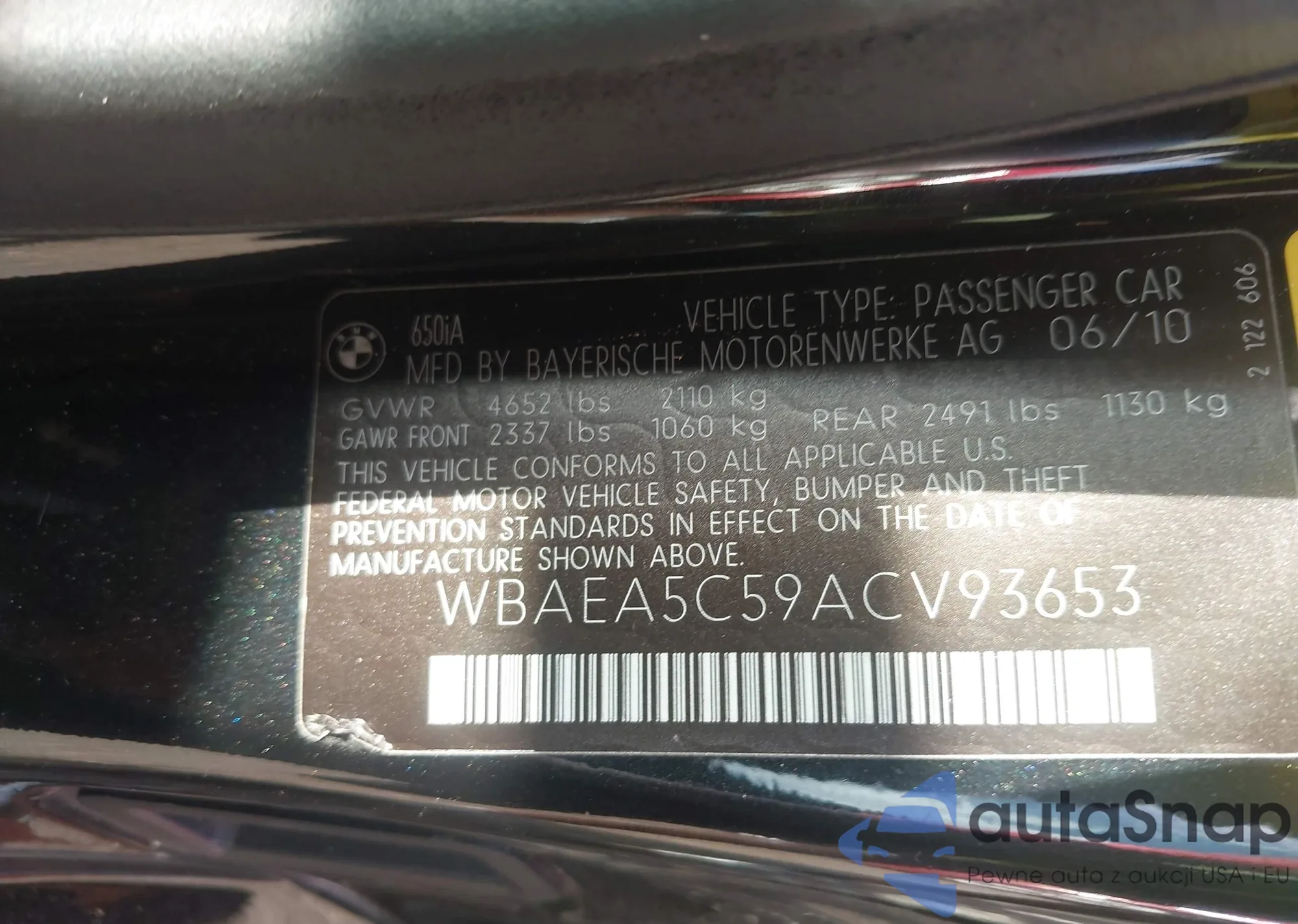• VIN WBAEA5C59ACV93653