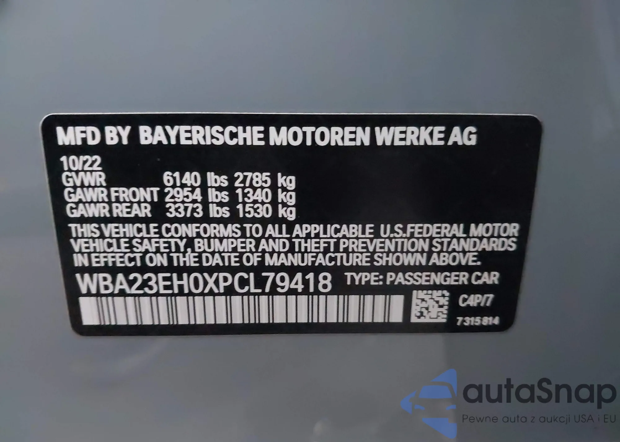 • VIN WBA23EH0XPCL79418